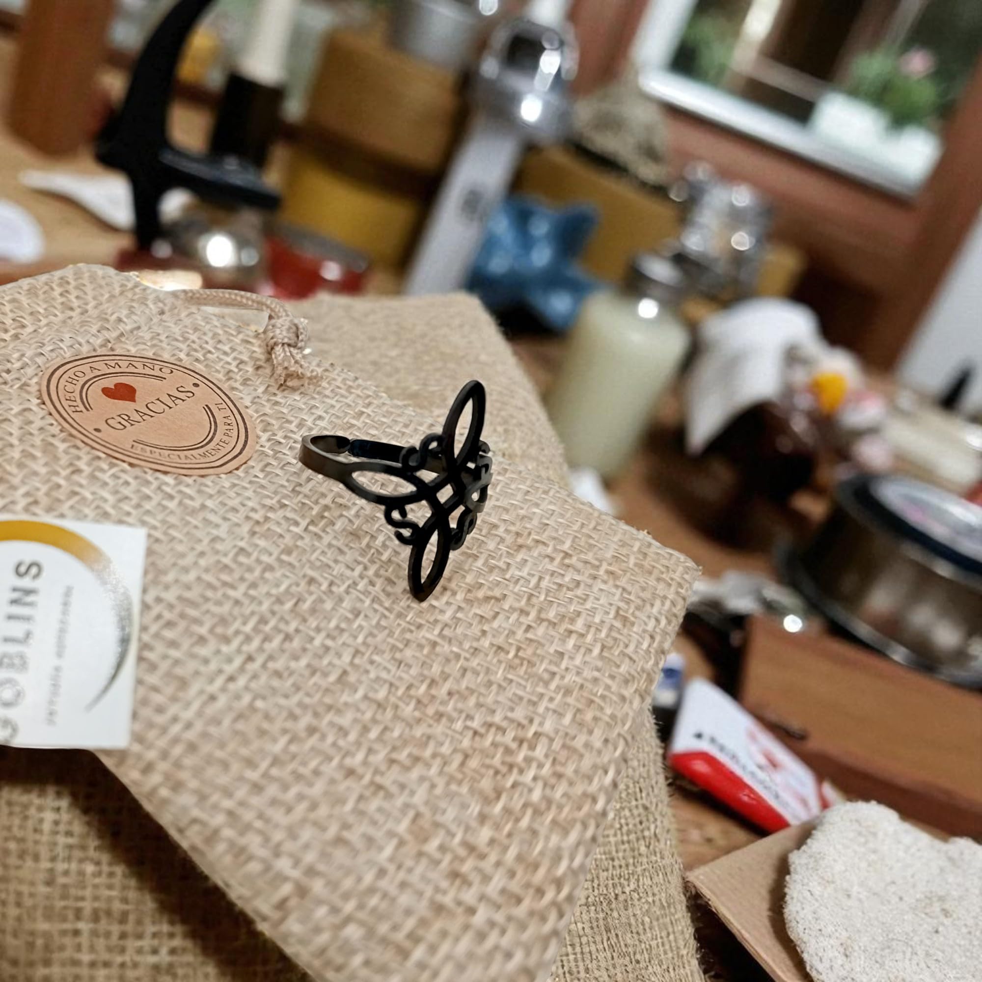 Descubre el poder ancestral del Anillo Nudo de Bruja en acero negro 316L: un talismán protector inspirado en símbolos wiccanos y celtas. Representa la unión entre cuerpo, mente y espíritu, protegiendo de energías negativas. Ideal para mujeres espirituales, amantes del misterio y la magia.