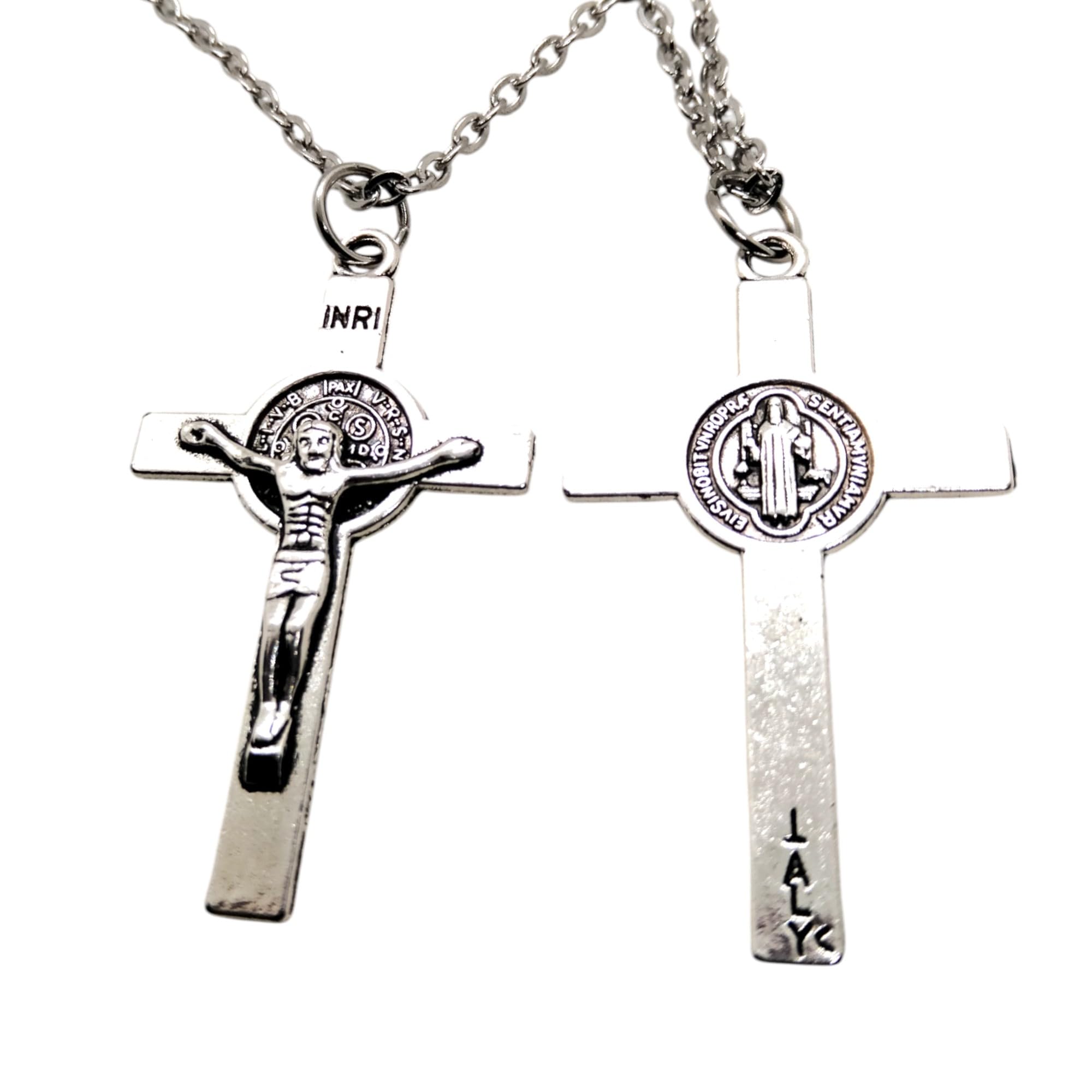 2 COLLARES con Colgante de Cruz San Benito Católico, Gargantilla Protección con Cadena de Acero Inoxidable 45 centímetros ajustable a 48