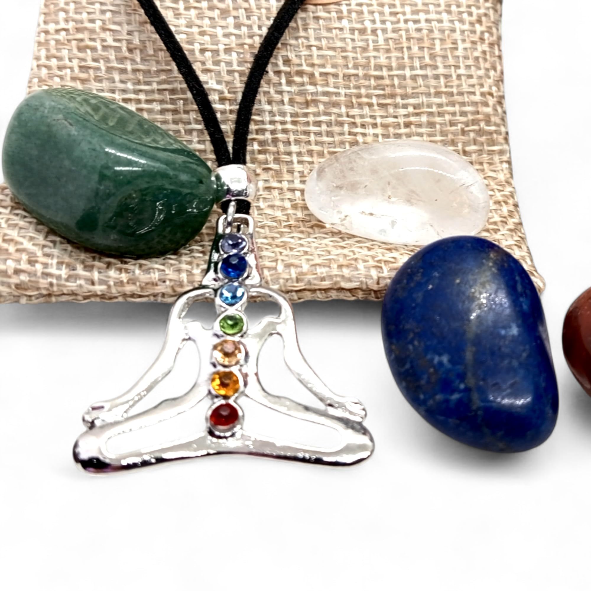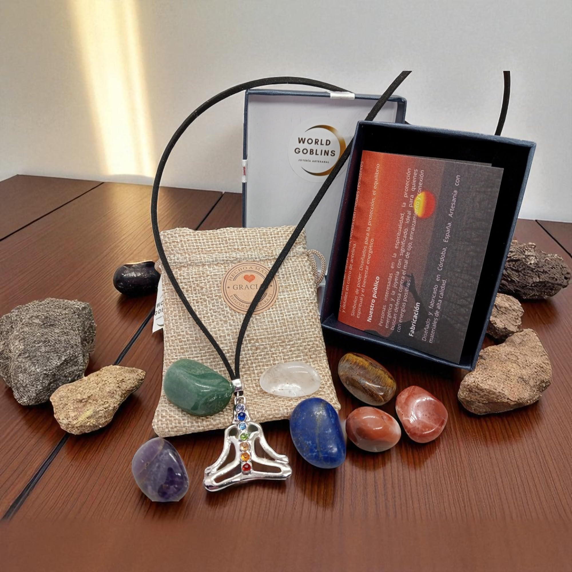 Incluye collar artesanal de 70 cm con piedras de chakras. Ideal para meditación, equilibrio energético, protección y bienestar interior. +Driptico informativo para activar el collar.