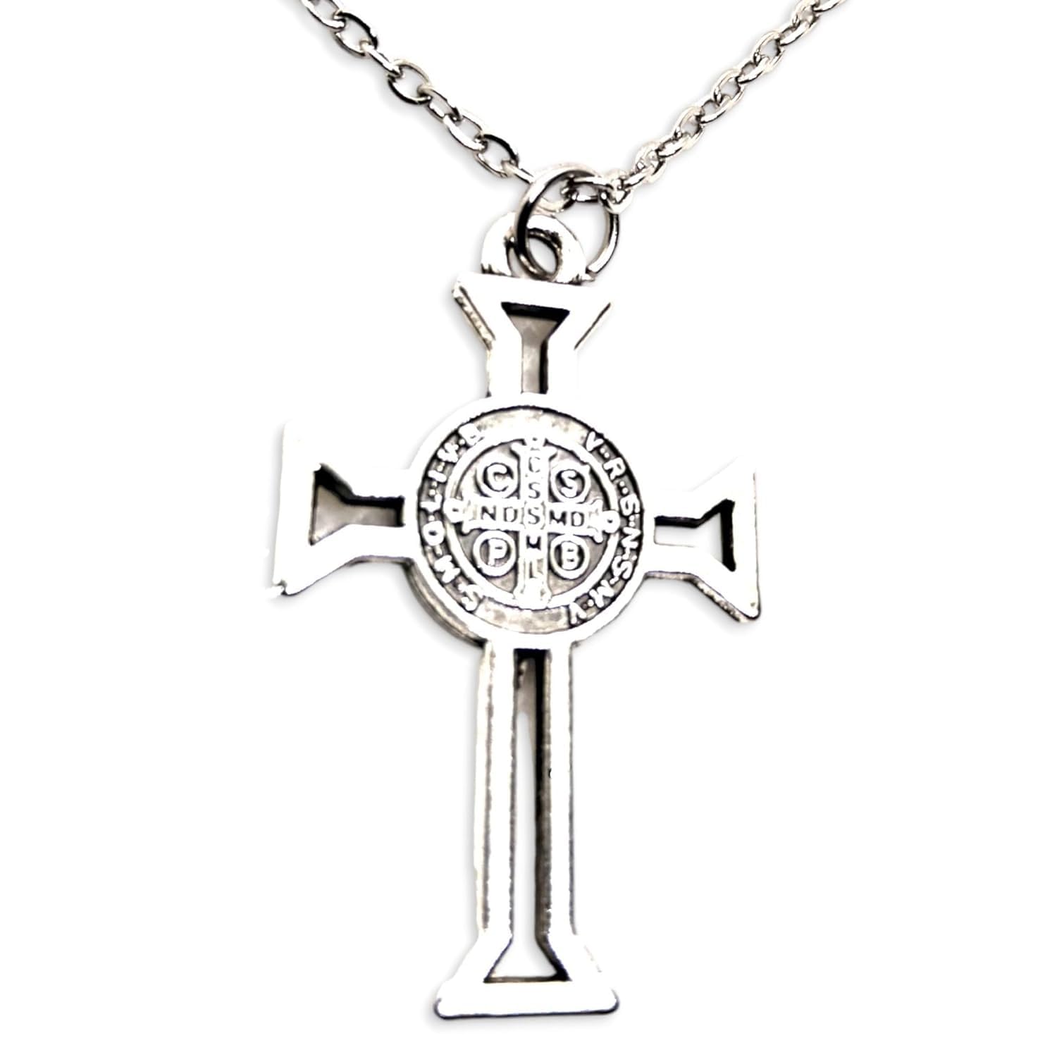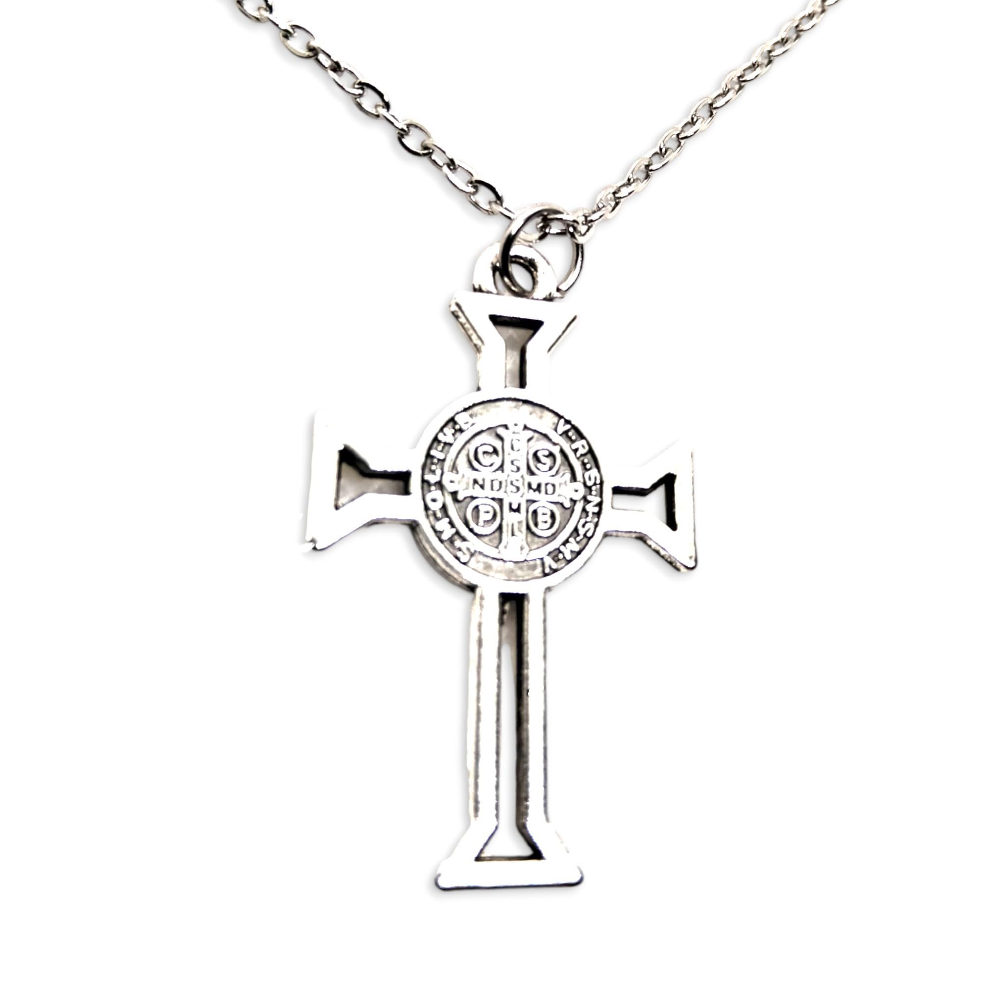 1 Collar de Cruz de San Benito Colgante de Medallón de San Benito Católico, Gargantilla Protección con Cadena de Acero Inoxidable 45 centímetros ajustable a 50