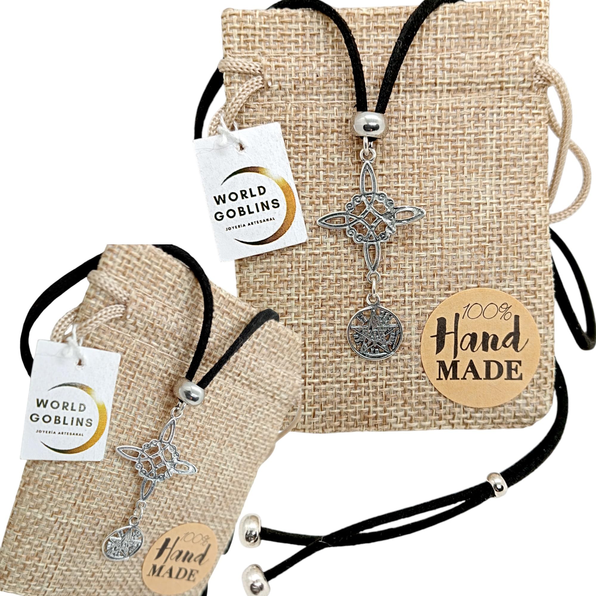 Detalles: WORLD GOBLINS artisans. La fabricación World Goblins se basa dos valores: calidad y servicio a sus clientes. Nos esforzamos por producir joyería de alta calidad y diseños propios. Cada collar de Nudo de Bruja está hecho a Mano con antelina de 70cm ajustable. Únicos y diferentes¡¡