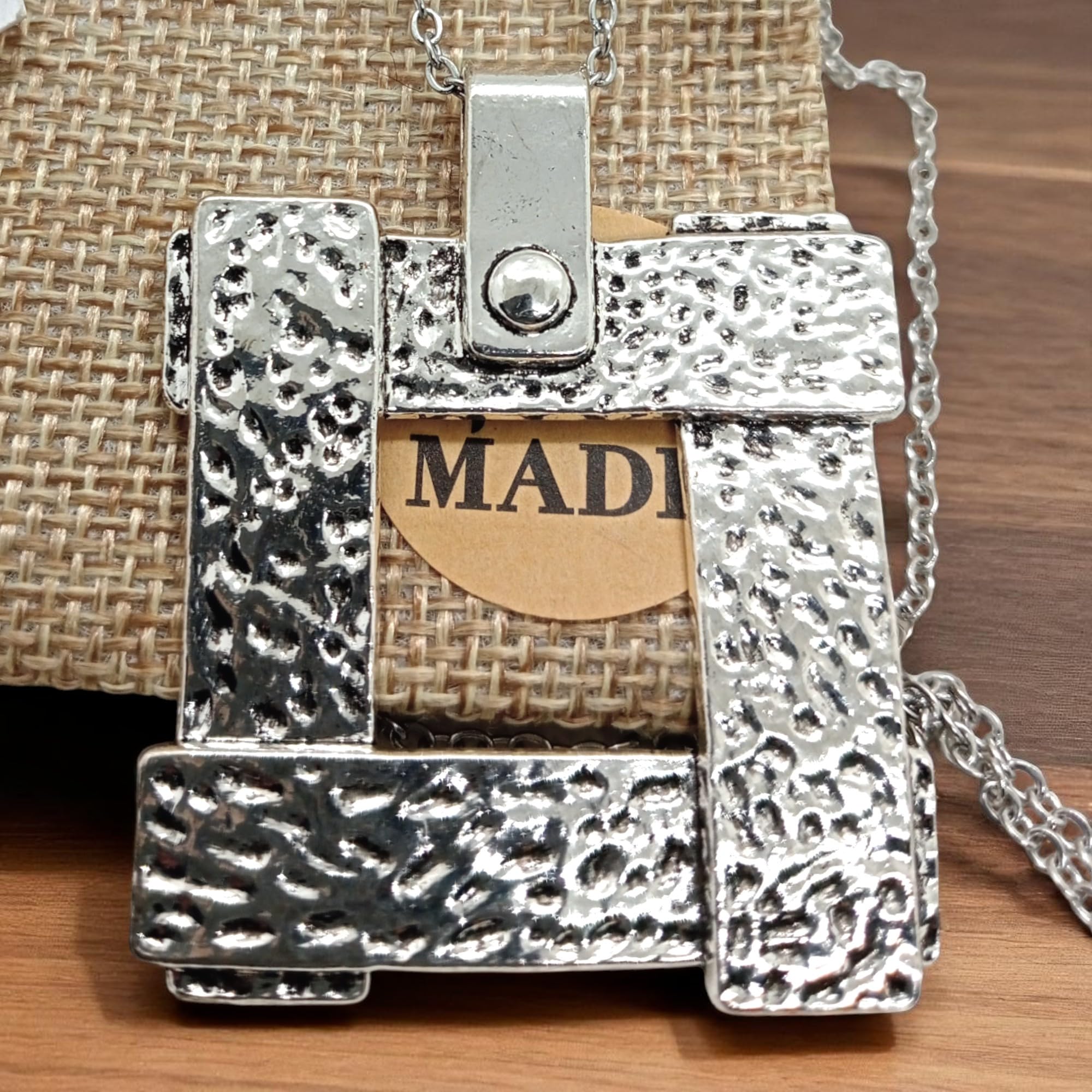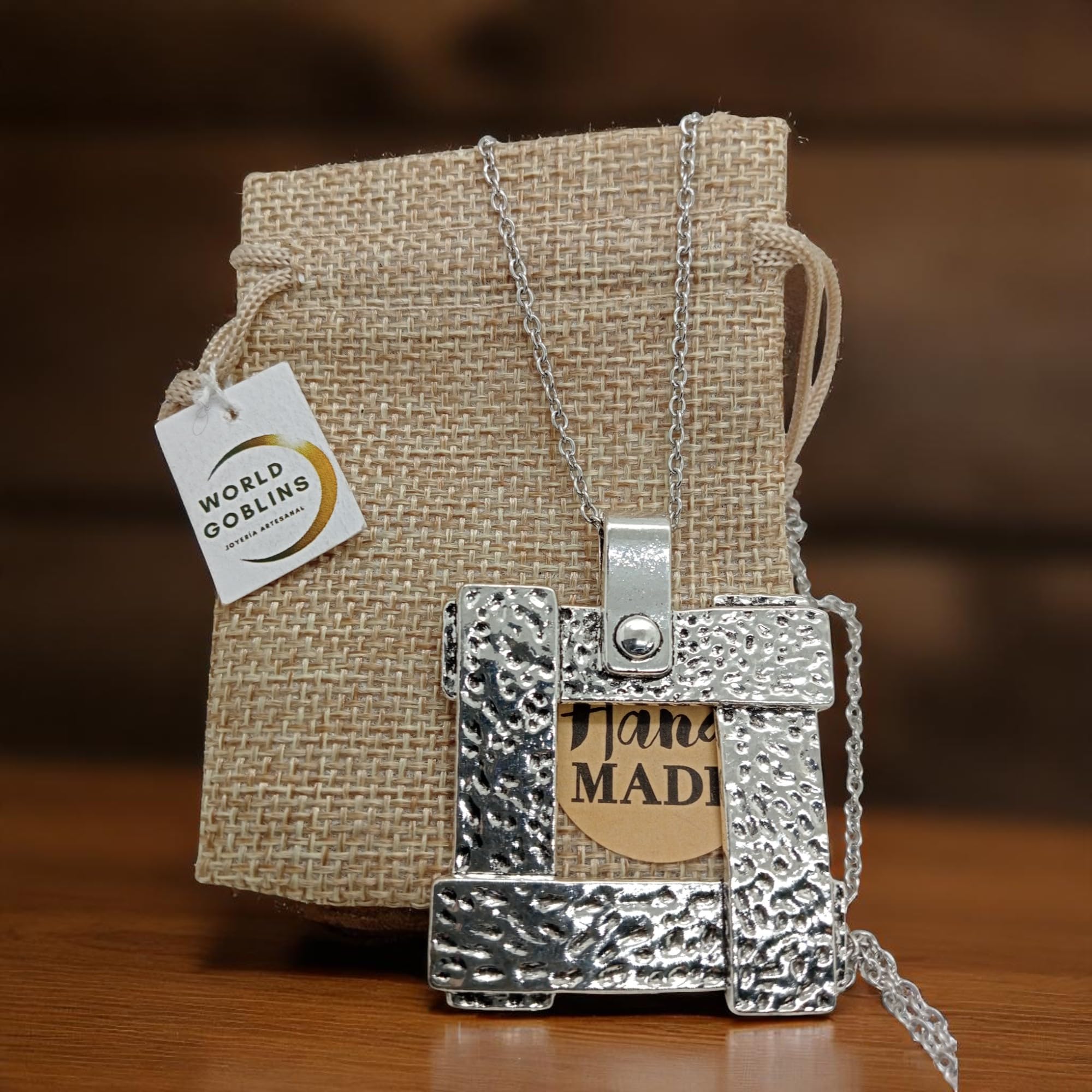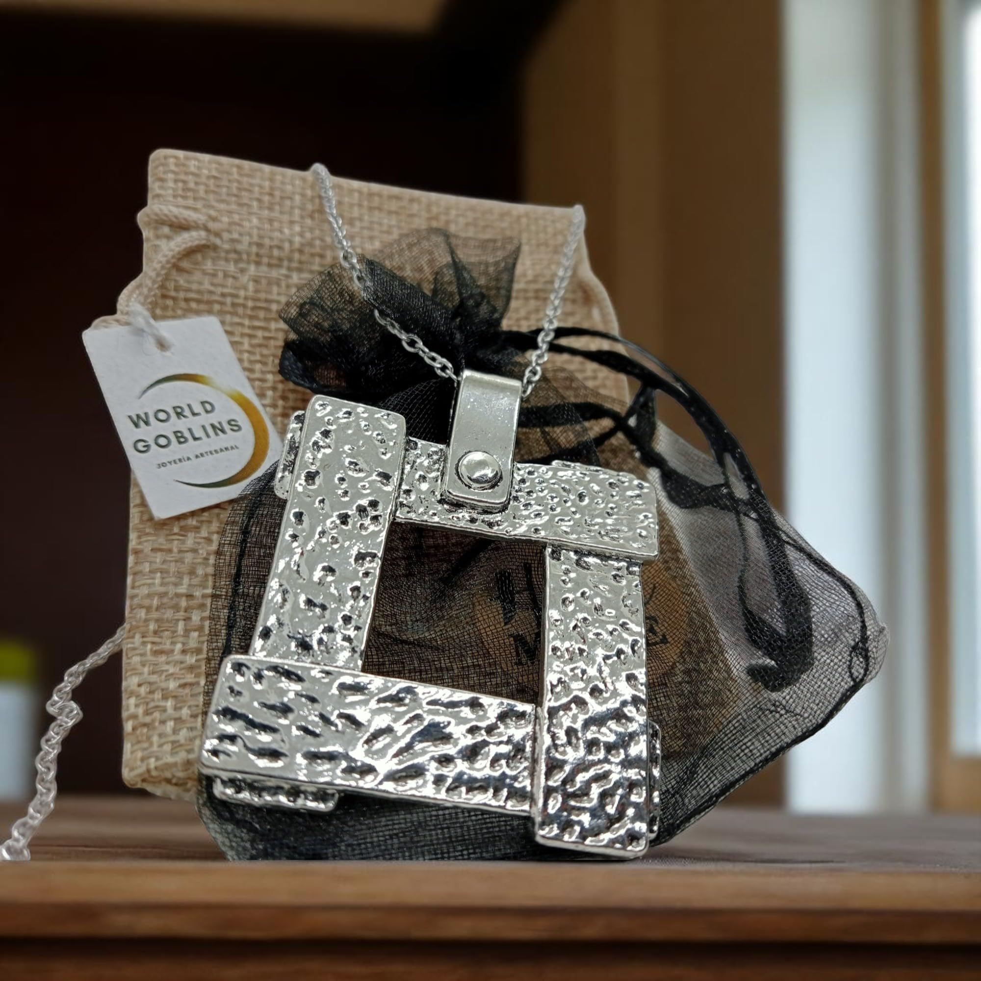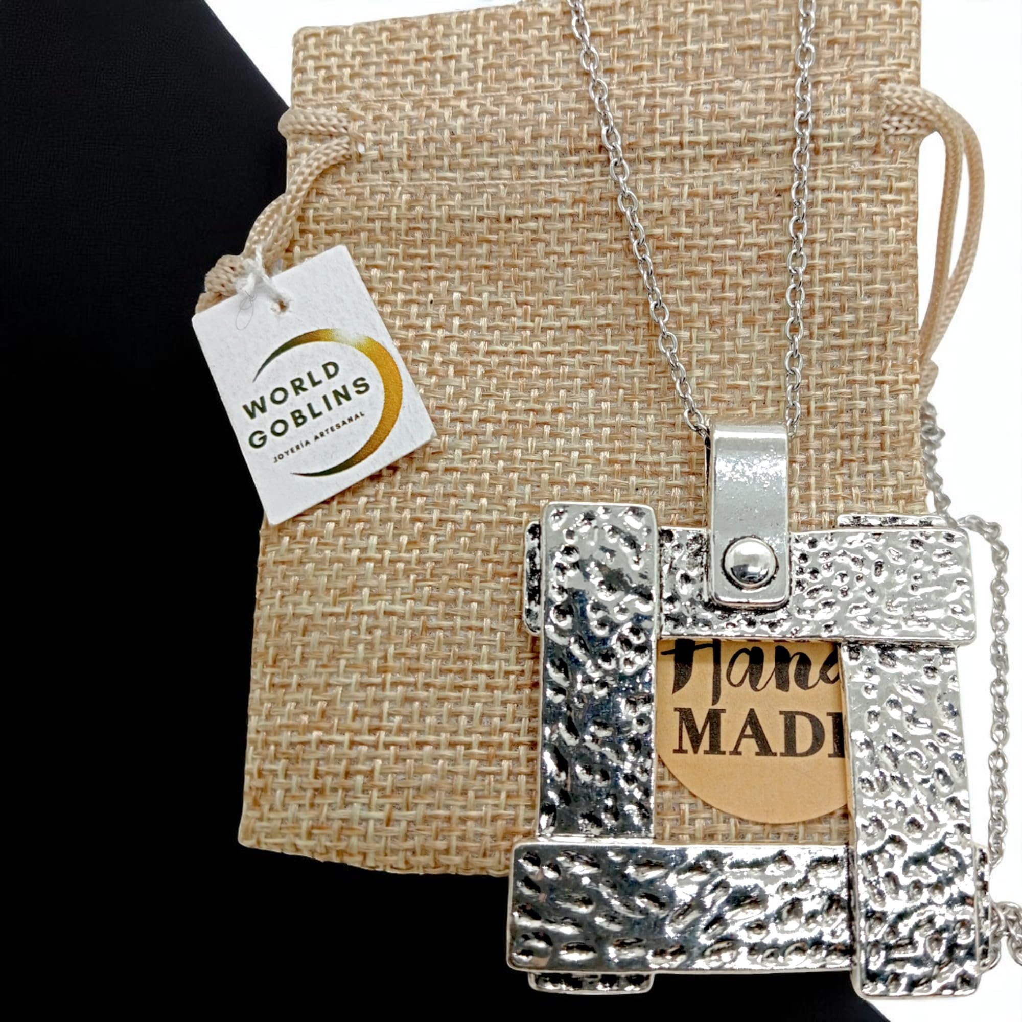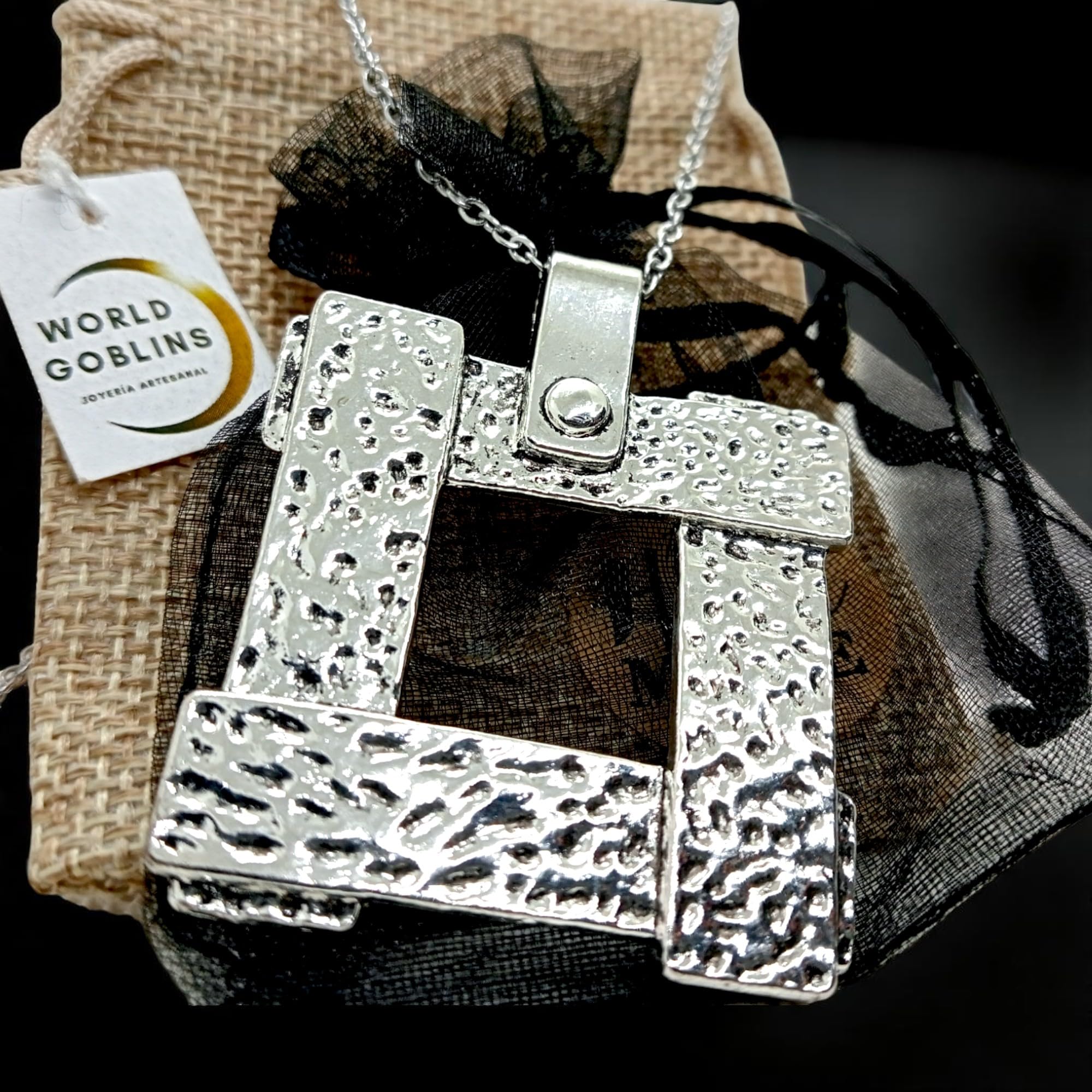 Detalles: Este collar de estilo vanguardista destaca por su diseño moderno y llamativo. El colgante cuadrado de 4×4 cm (5 cm con asa) está bañado en Plata de Ley 925 (12 micras), y cuelga de una cadena de acero inoxidable 316L de 50 cm, resistente y elegante. Una pieza ideal para lucir en fiestas, eventos especiales o simplemente para elevar cualquier outfit. Hecho con materiales de alta calidad y pensado para quienes buscan originalidad y presencia. Diseñado en Córdoba por WORLD GOBLINS, joyería espiritual y con estilo.