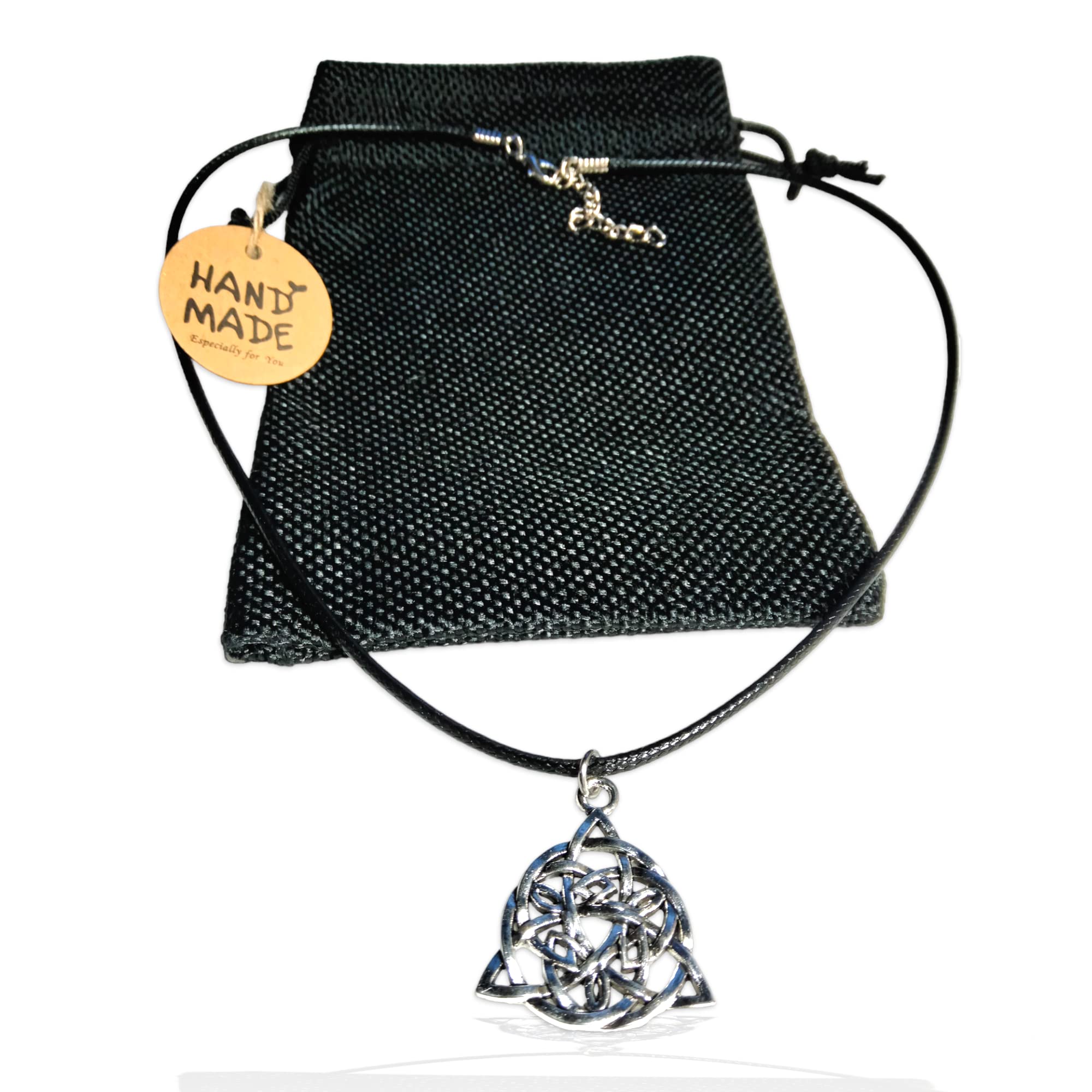WORLD GOBLINS Collar Nudo de Bruja Amuleto Plata | Antelina Negra 50cm Adaptable para Hombre y Mujer | Amuleto | Protección contra Hechizos + Bolsa de Yute Hecha a Mano Regalo (Estilo 5)