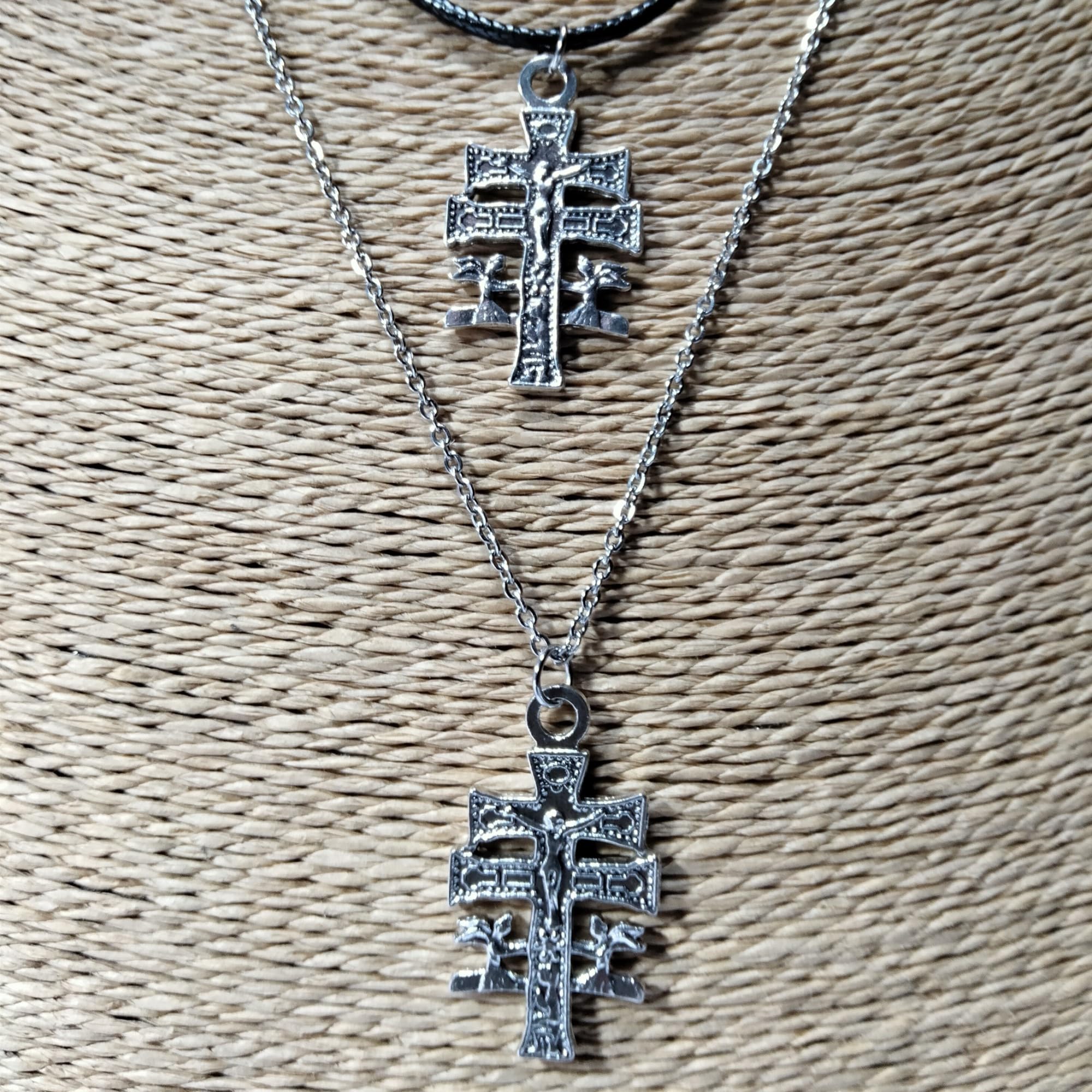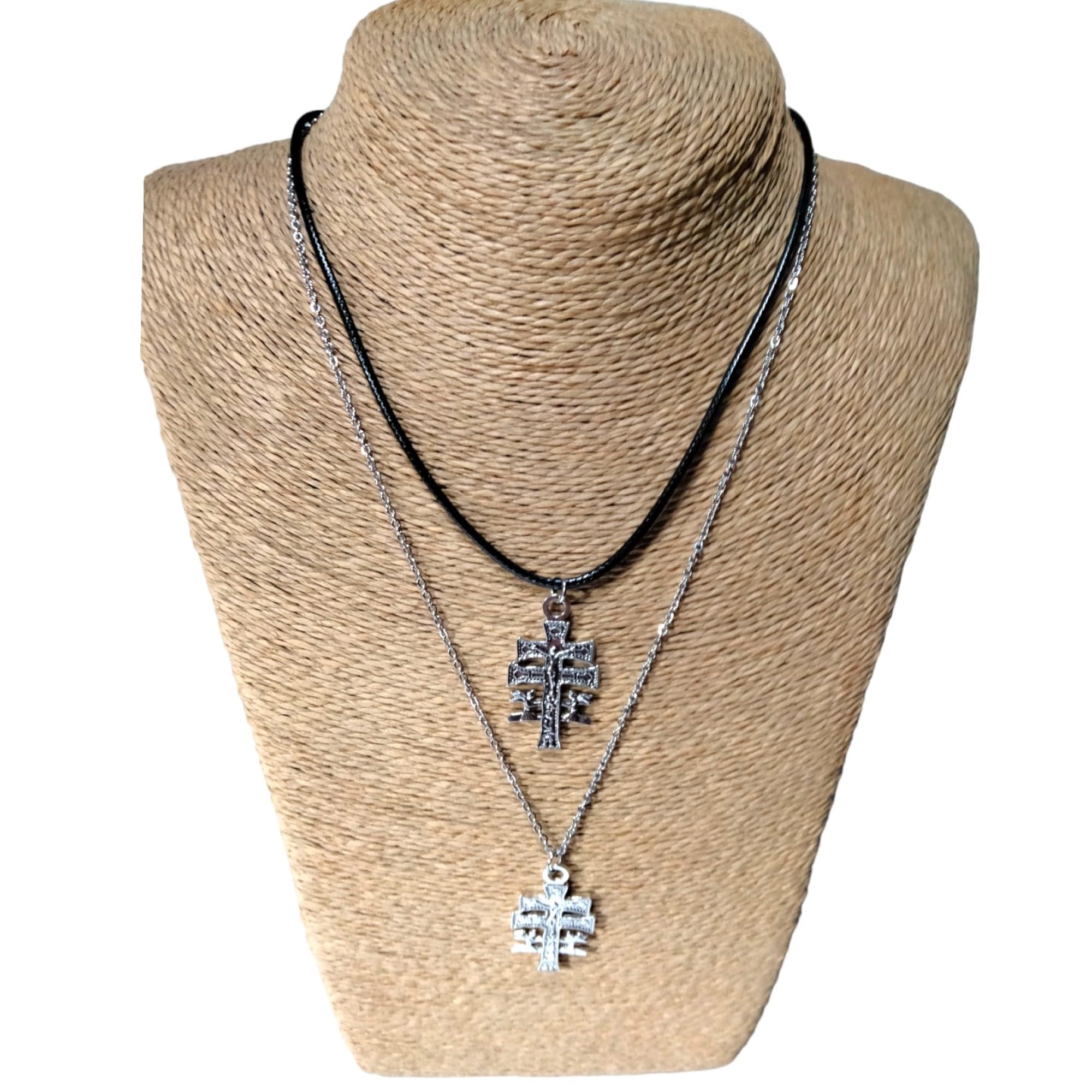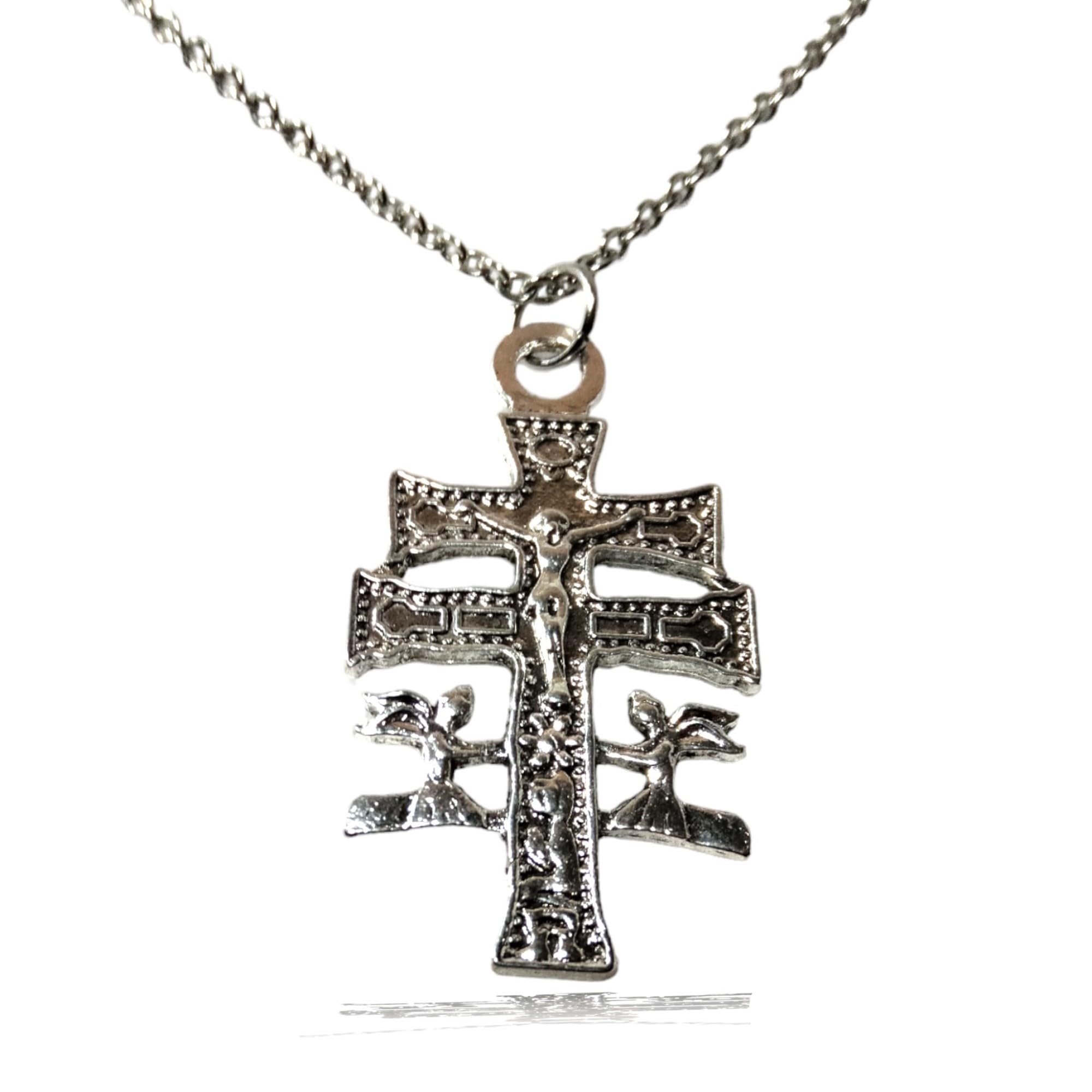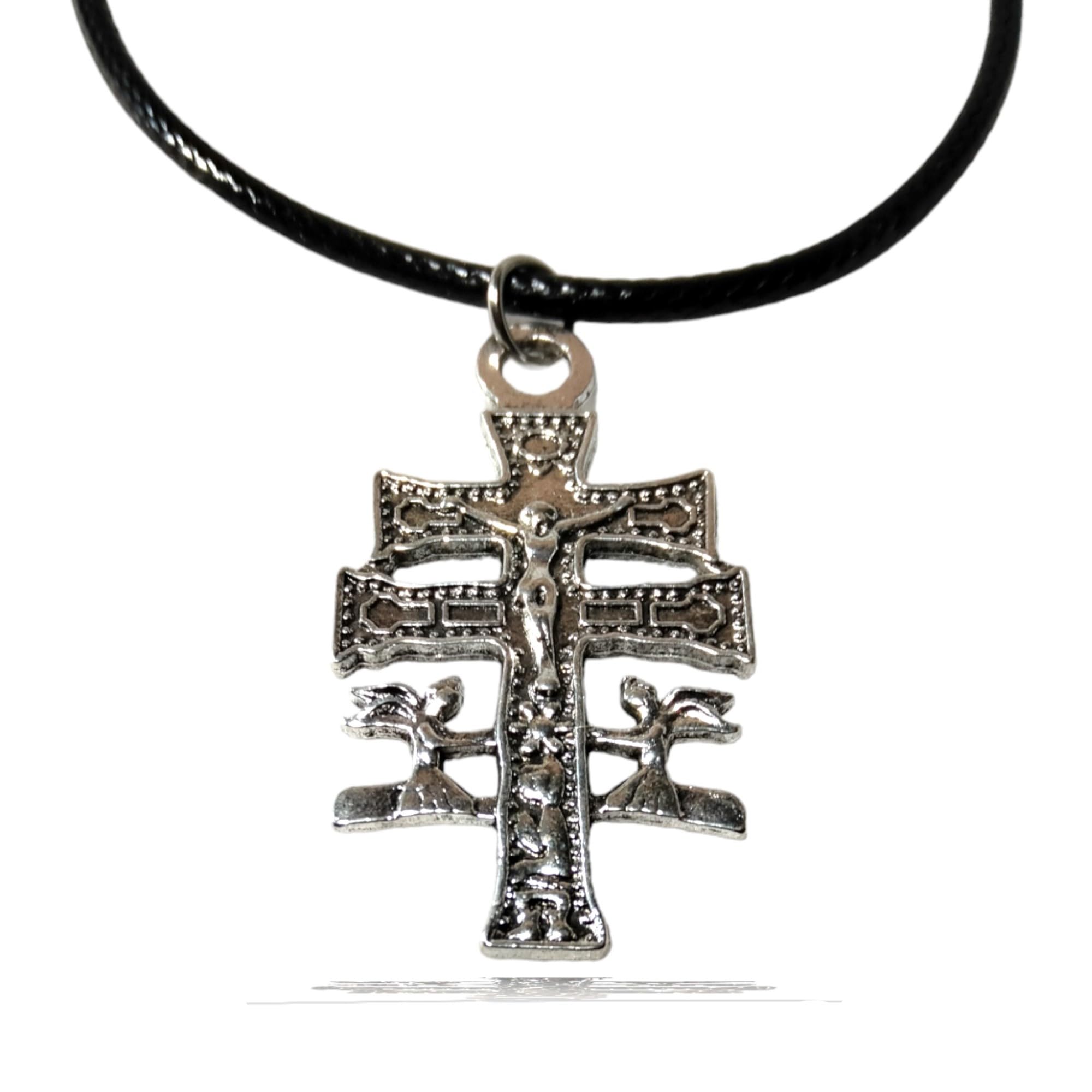 Detalles: La Cruz de Caravaca tiene múltiples significados: representa el cristianismo, la fe en Jesucristo y es una reliquia de la cruz donde murió. También se considera un potente amuleto de protección contra el mal, las energías negativas y los peligros, y se le atribuyen propiedades milagrosas y mágicas. Además, su forma simboliza la unión del plano espiritual y material. ¡No esperes más! Añade estos impresionantes collares a tu colección hoy mismo. Haz clic en «Añadir al carrito» y lleva contigo un pedacito de protección y elegancia. Hechas a mano en España , nuestras joyas no solo embellecen, sino que también protegen y aportan suerte. ¡Regala o luce estas piezas únicas y siente la diferencia!