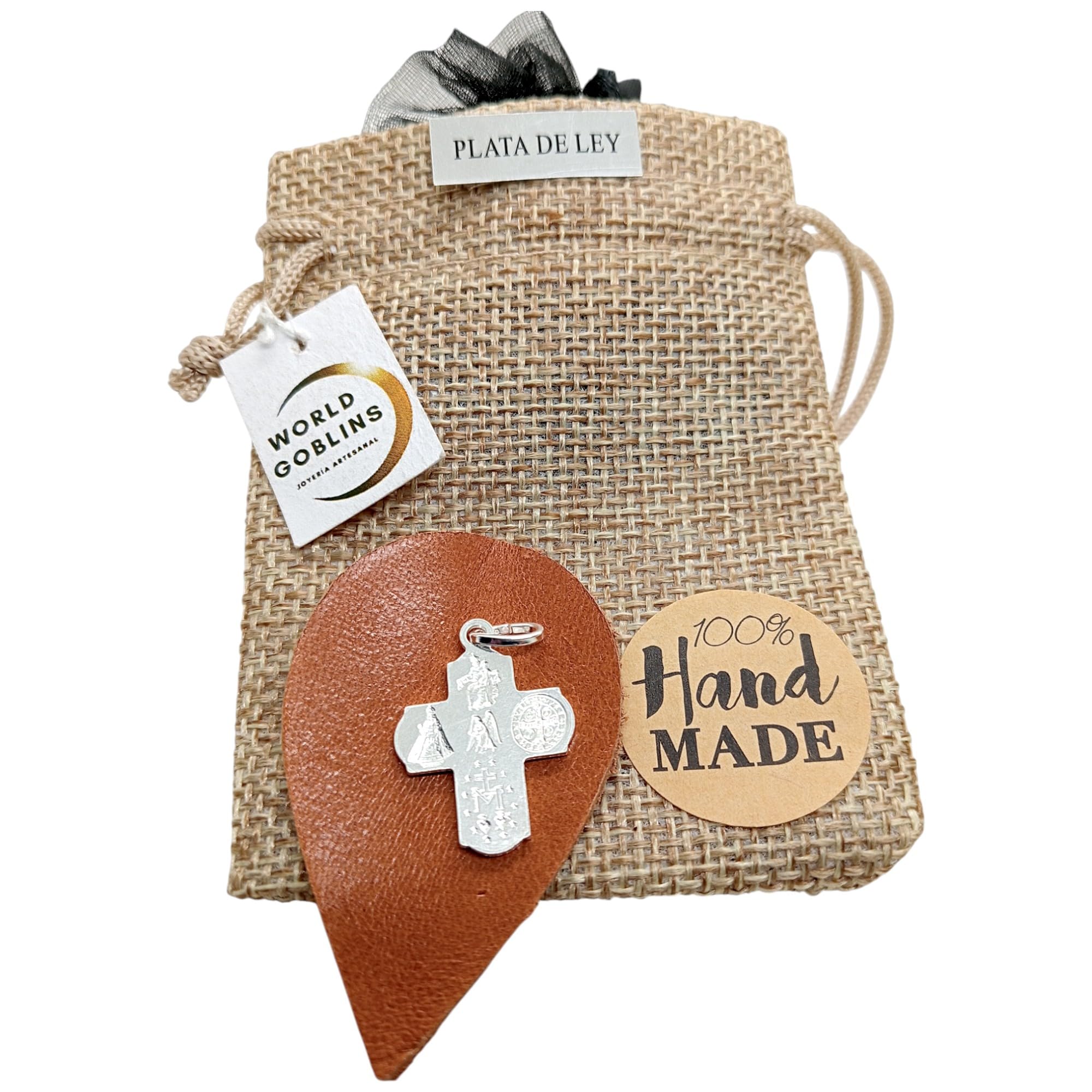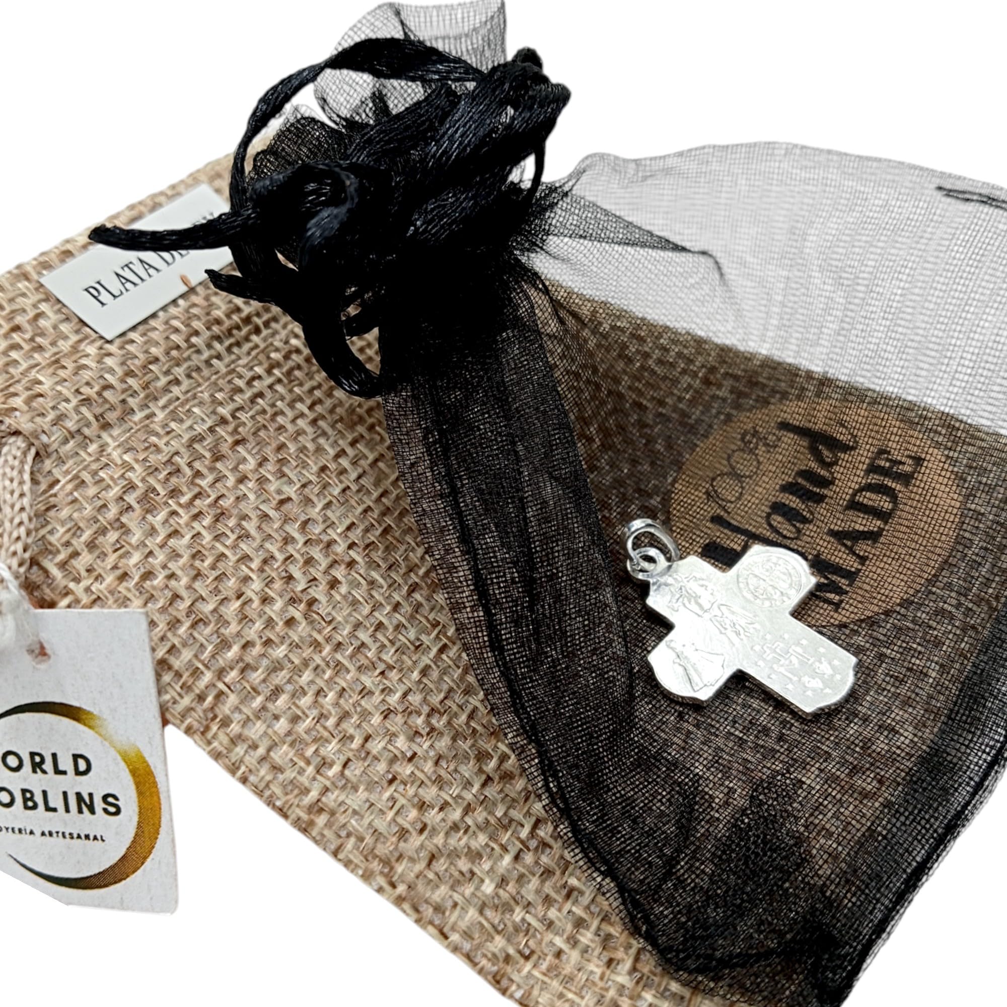 Detalles: El Colgante Cruz del Perdón de WORLD GOBLINS es una joya espiritual elaborada en Plata de Ley 925, que presenta un diseño detallado y simbólico. En el centro, se encuentra la figura de Cristo crucificado, acompañado por tres medallas devocionales en relieve: la Virgen del Carmen, San Benito y la Virgen de la Medalla Milagrosa. En la parte superior de la cruz, se lee la inscripción “Padre Perdónalos”, evocando un mensaje de fe y misericordia. Fabricado a mano en Córdoba, España, este colgante es una expresión profunda de espiritualidad y tradición. Con unas dimensiones de 28 mm de alto (incluyendo el asa) y 17 mm de ancho, y un peso aproximado de 2.5 gramos, es una pieza ligera y cómoda de llevar. Se entrega en una elegante bolsa de organza y una bolsa de yute artesanal, lista para regalar o para acompañarte en tu camino espiritual.