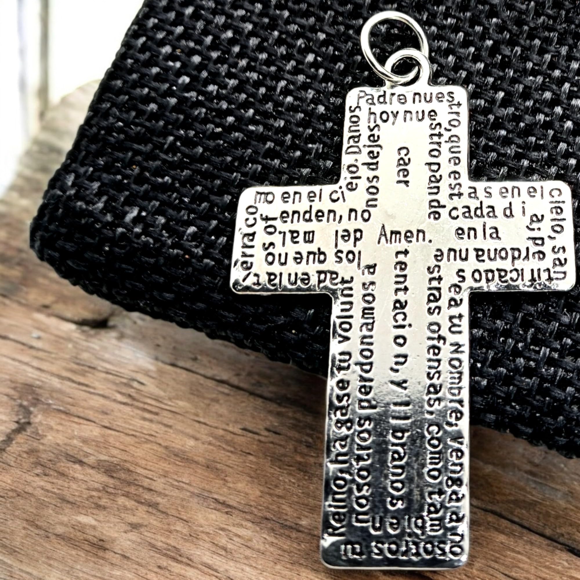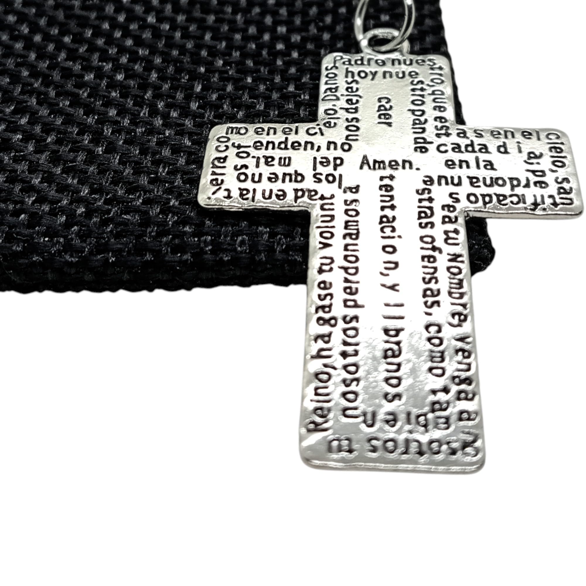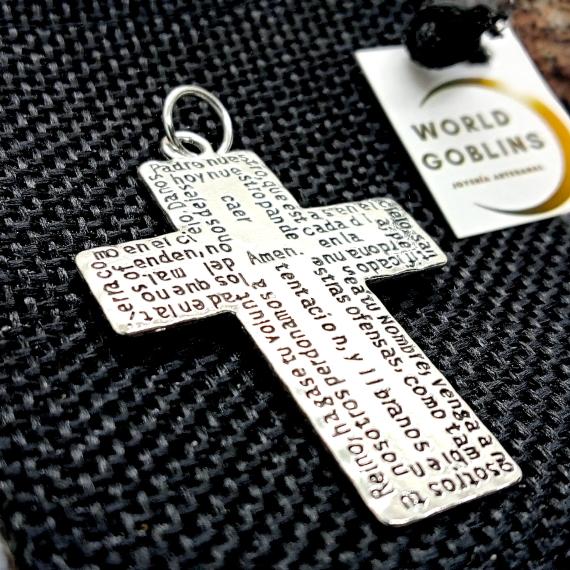- 🌙🀄 CRUZ con PADRE NUESTRO Colgante religioso con el texto completo del Padre Nuestro grabado en gran relieve, legible y profundamente simbólico