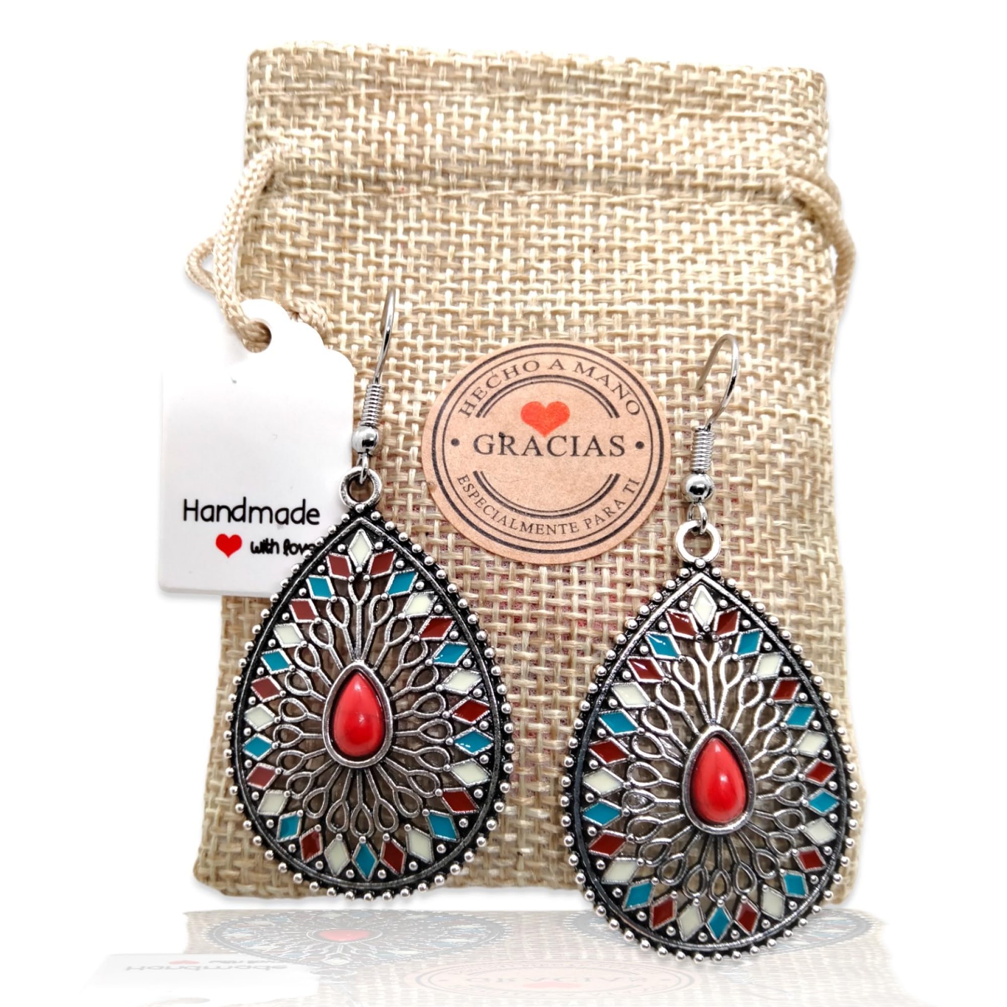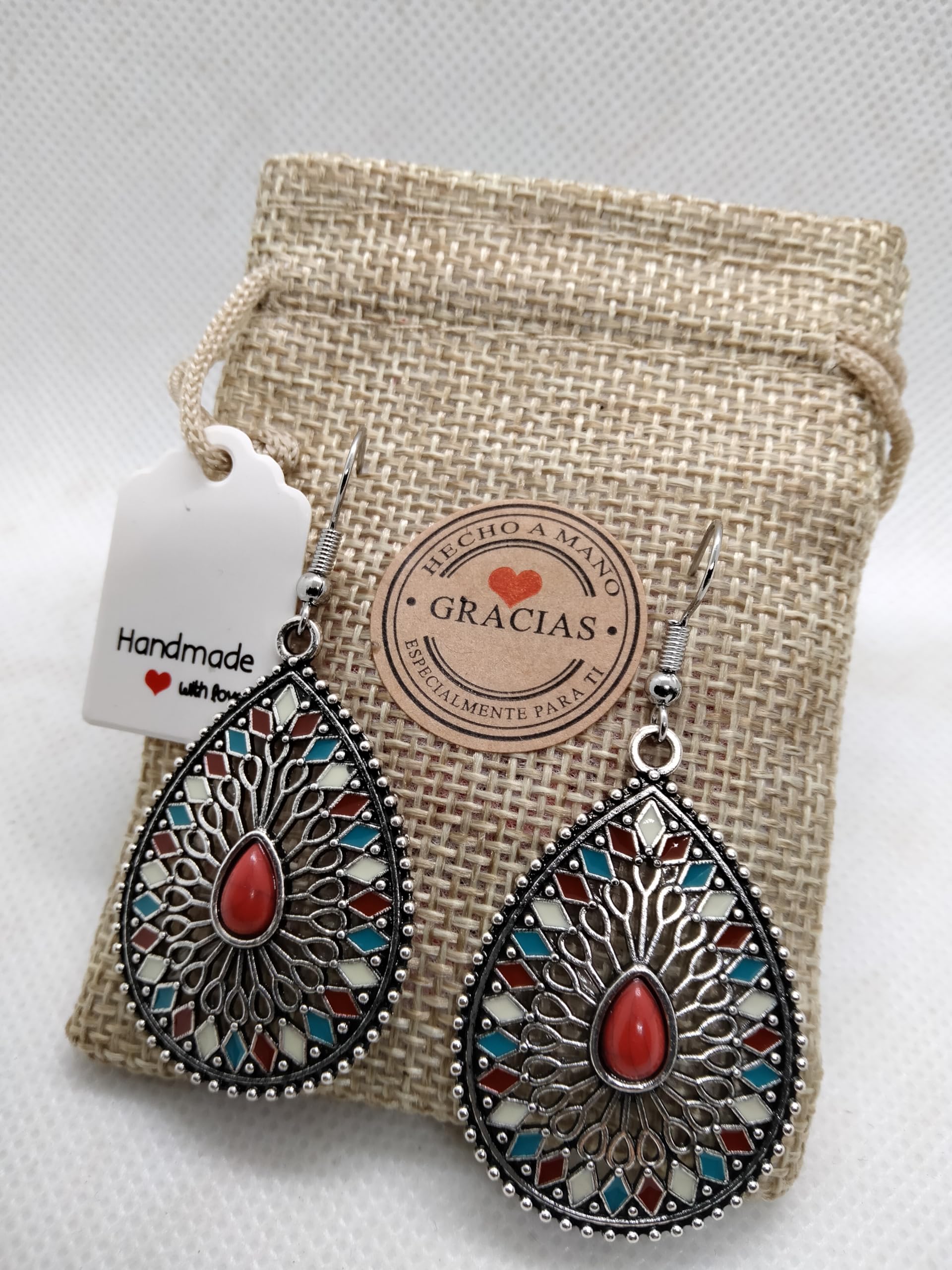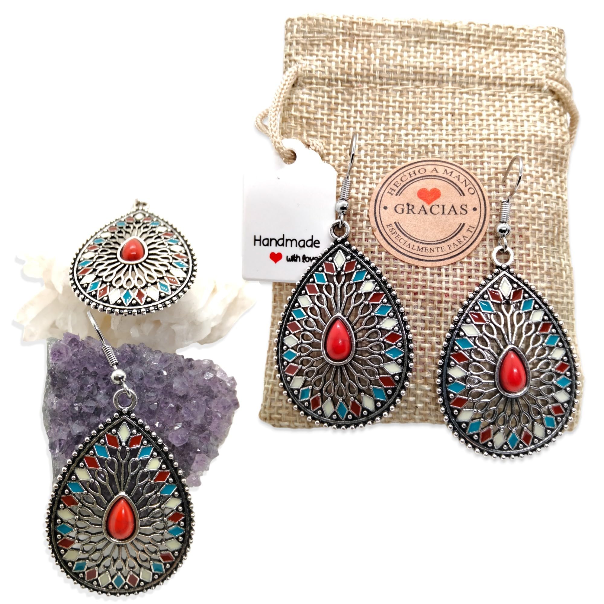 - 🌙 ESTILO VINTAGE forma de gota con un estilo bohemio vintage fiesta esmaltado a mano y en su centro una Turquesa que captura la atención en cualquier ocasión.