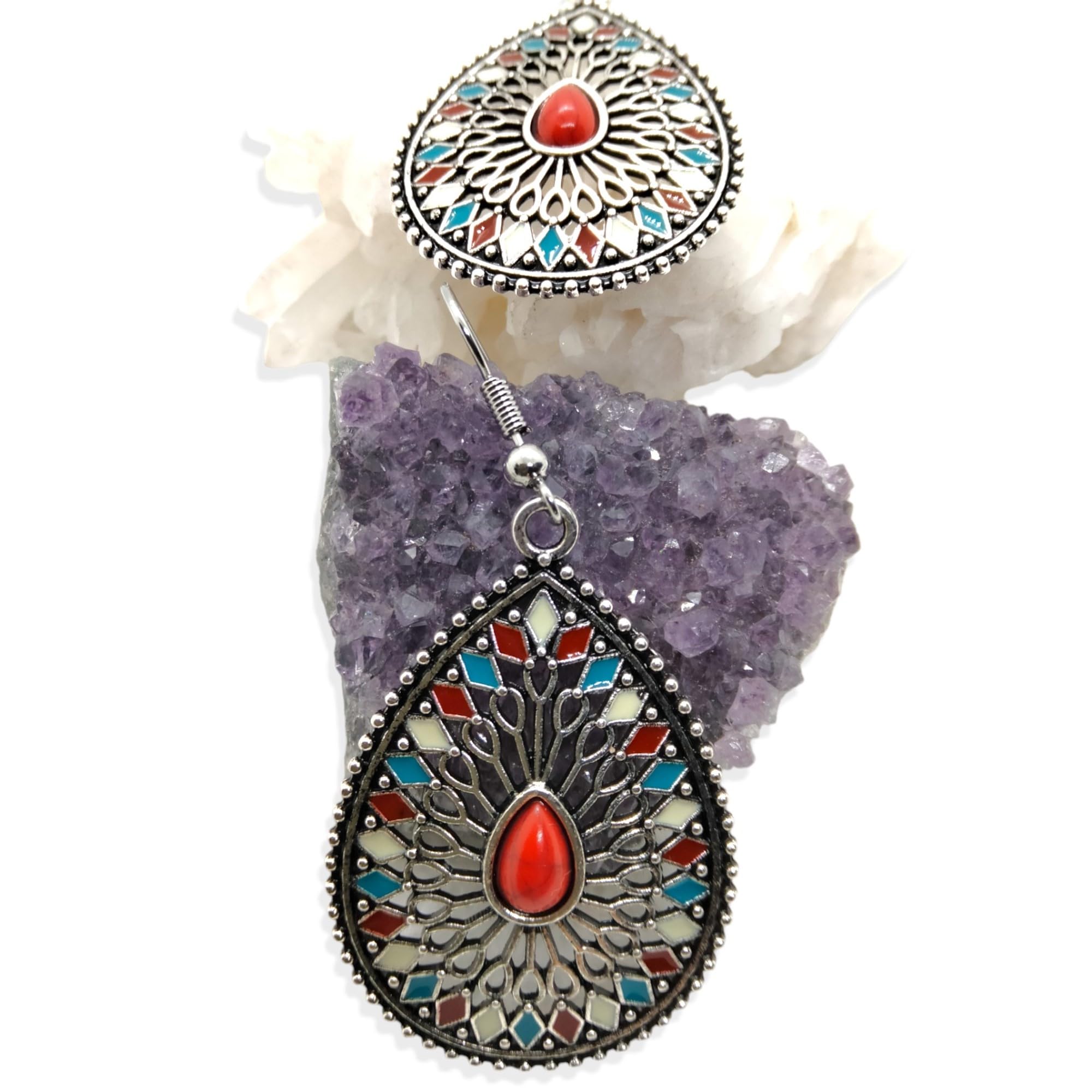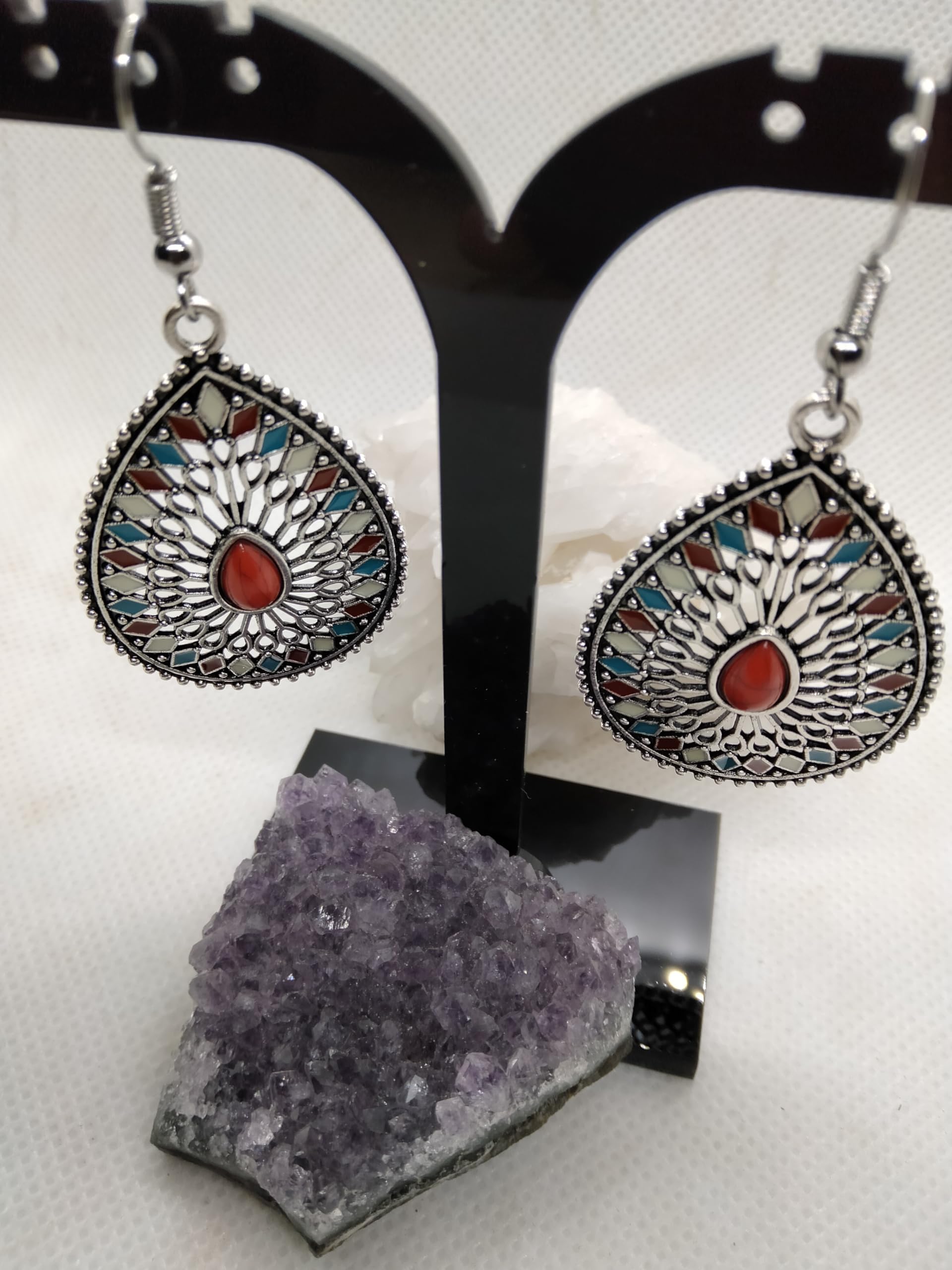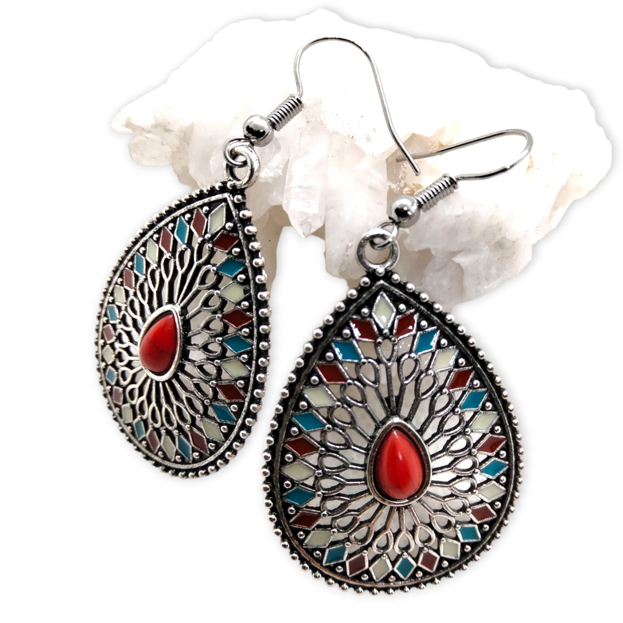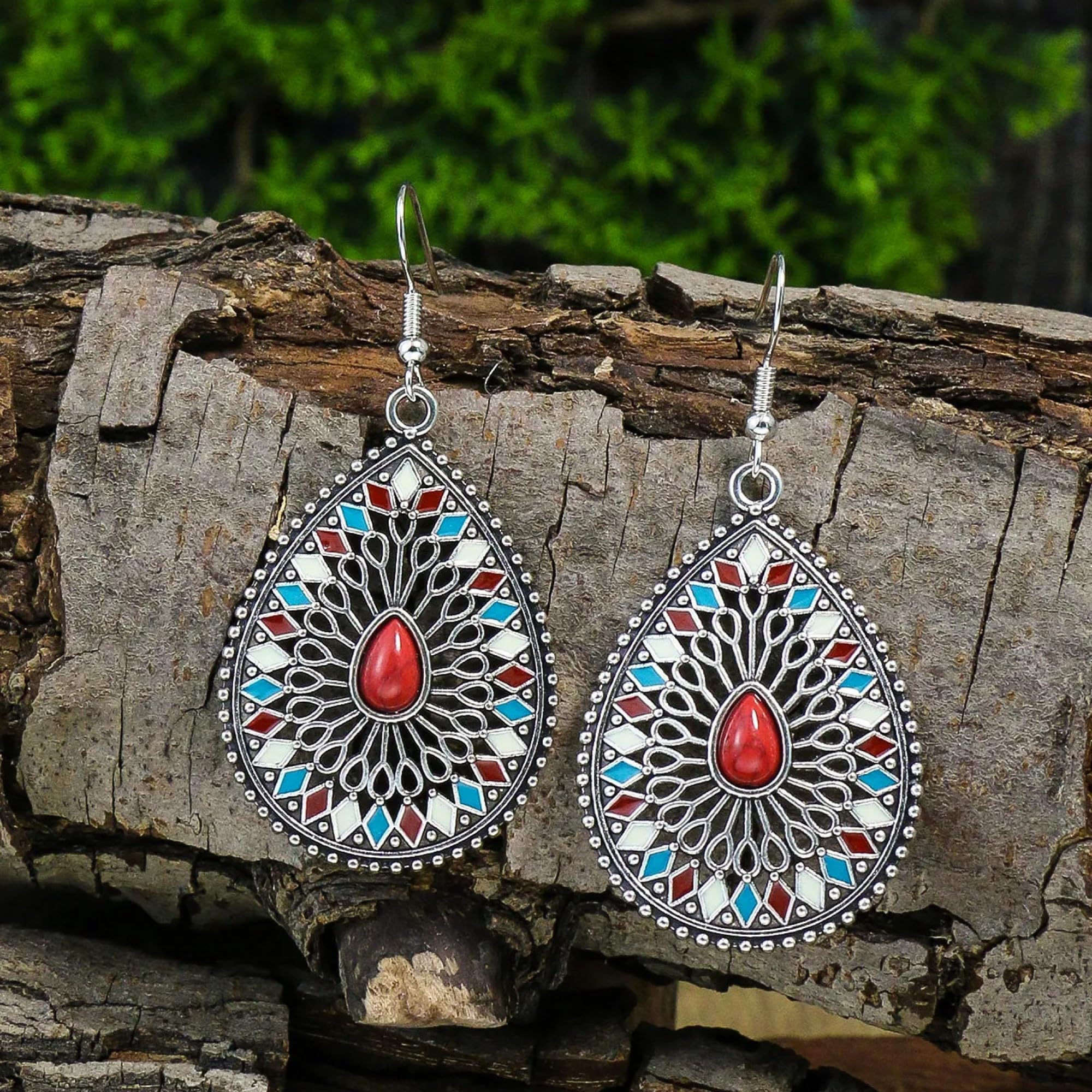 - 🌙 ESTILO VINTAGE forma de gota con un estilo bohemio vintage fiesta esmaltado a mano y en su centro una Turquesa que captura la atención en cualquier ocasión.