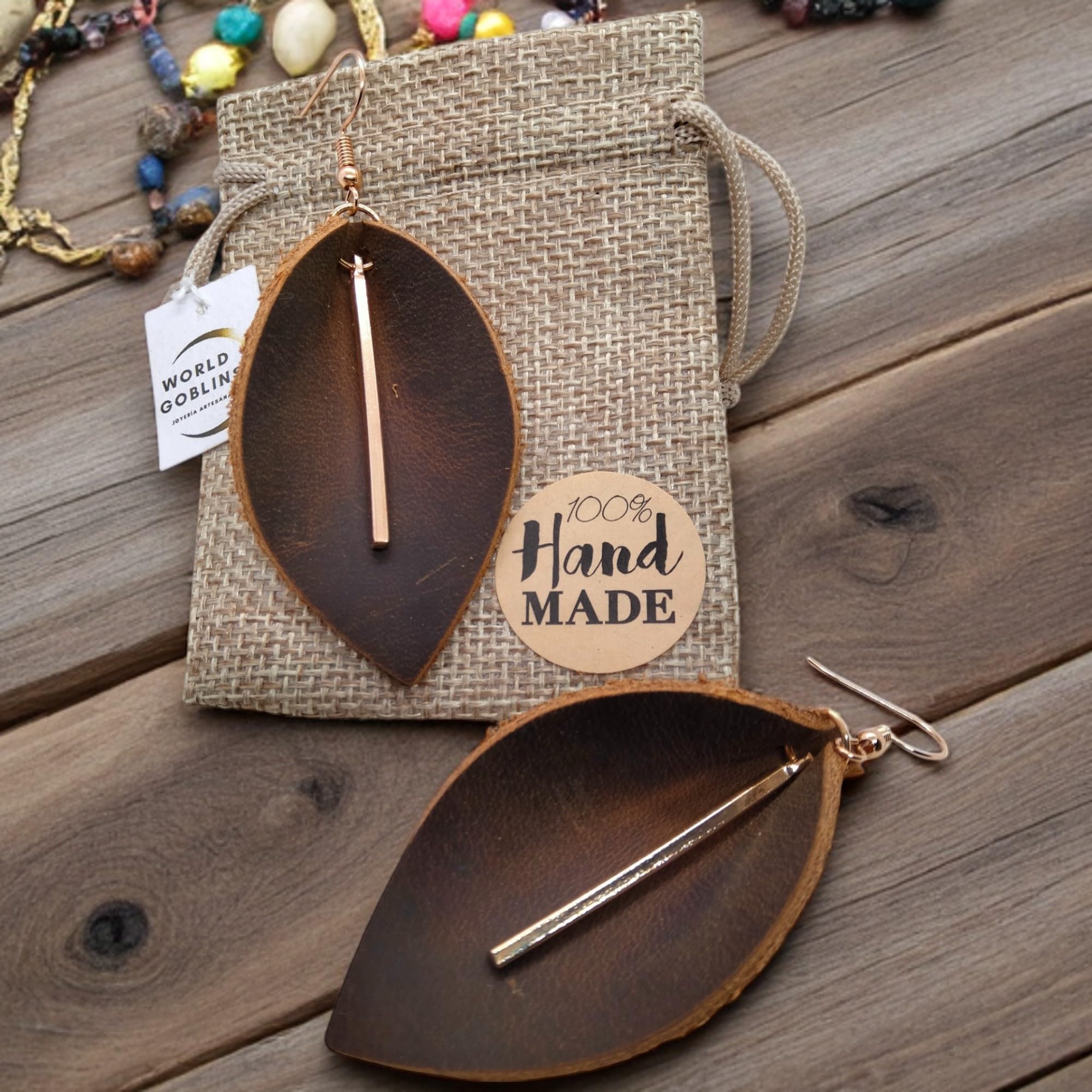 Conectados con la tierra, la naturaleza y la energía de lo auténtico, estos pendientes de cuero en forma de hoja han sido diseñados para almas libres y espirituales. Cada par es una pequeña obra de arte creada a mano en Córdoba, España, donde la tradición artesanal cobra vida en piezas únicas y llenas de significado.