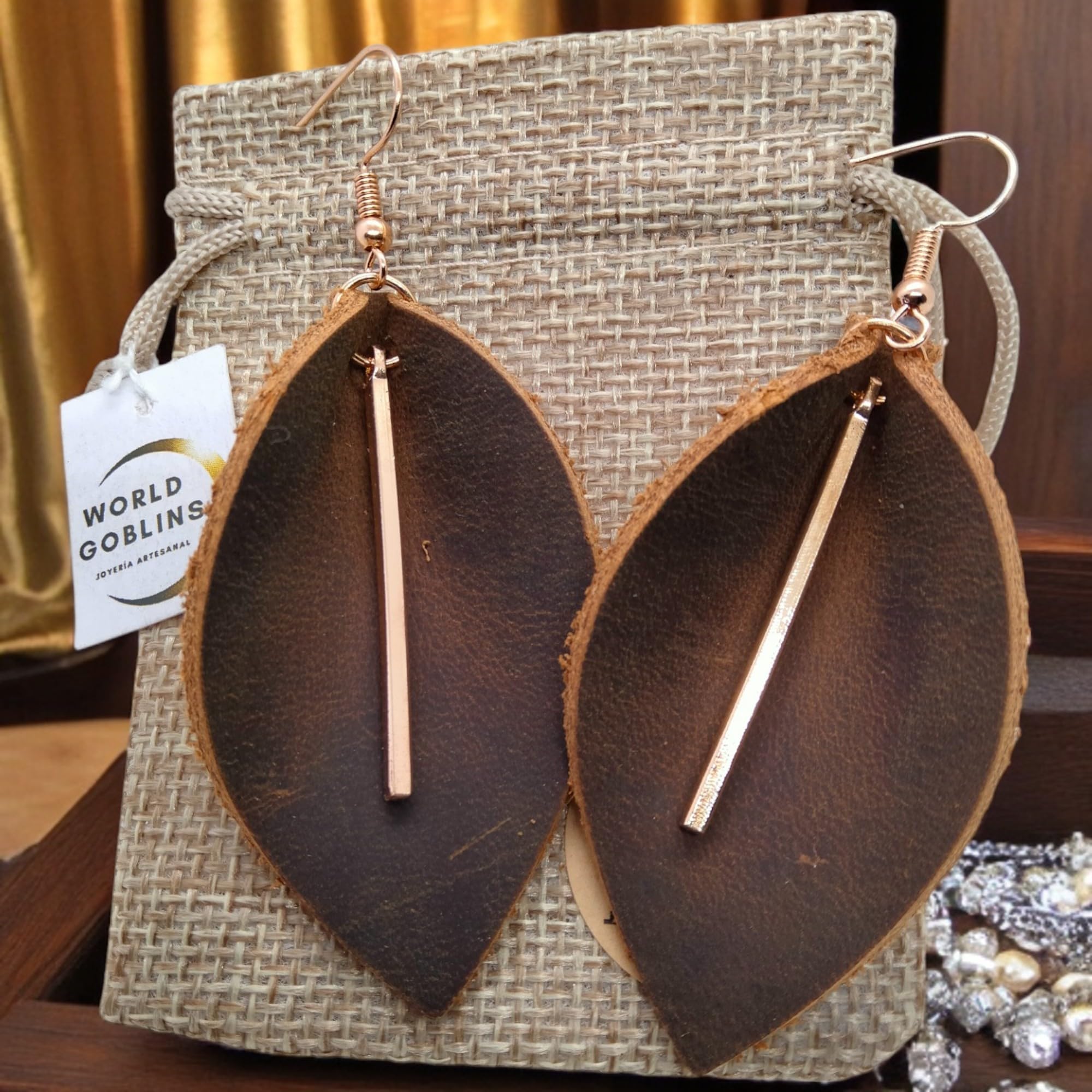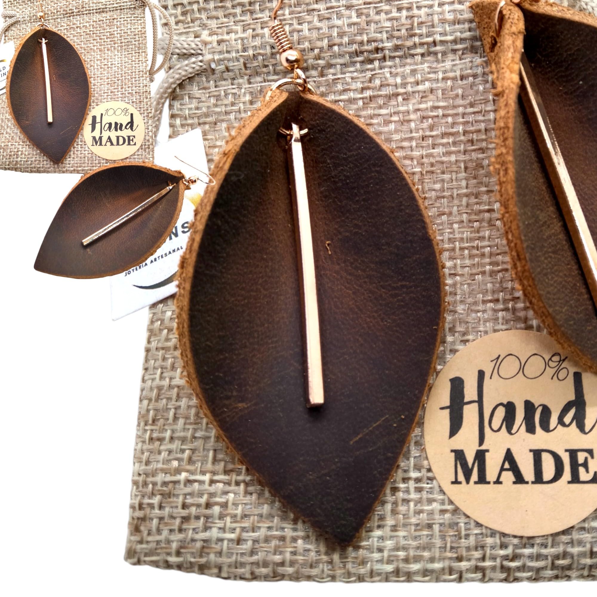 Detalles: Pendientes de Cuero con Diseño de Hoja – Hechos a Mano