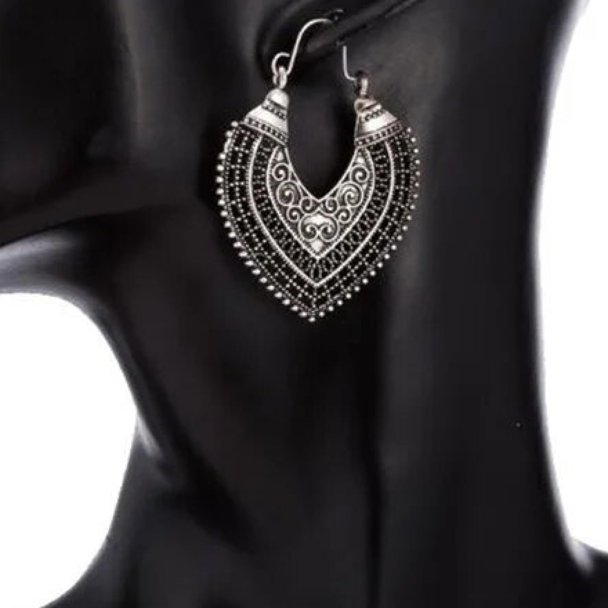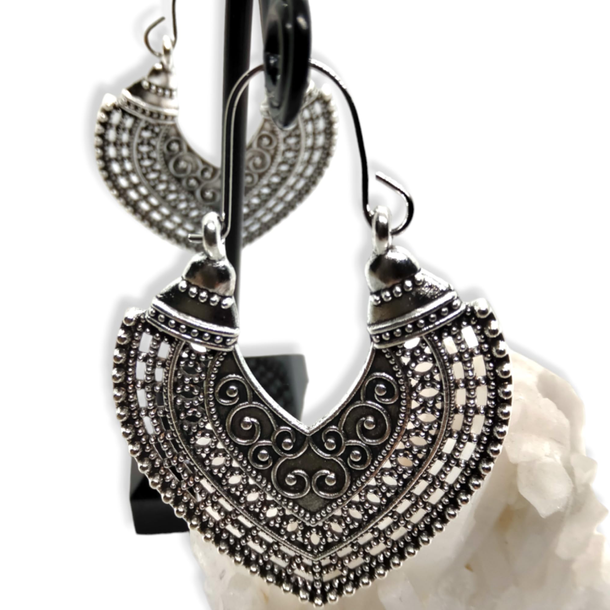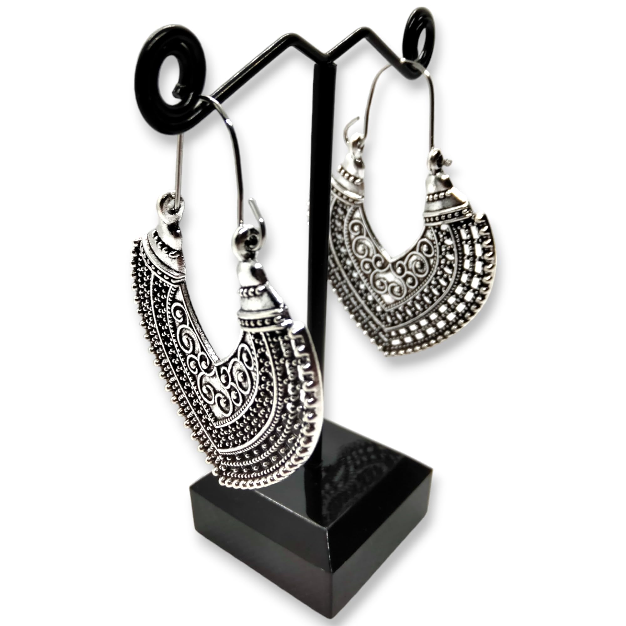 WORLD GOBLINS Pendientes Vintage Plata Hueco de Estilo Nacional Hippie. Llamativos en Forma de Corazón Hechos a Mano, Joyería Original Artesanal. Córdoba. España. Regalo Mujer (Óxido Corazón)