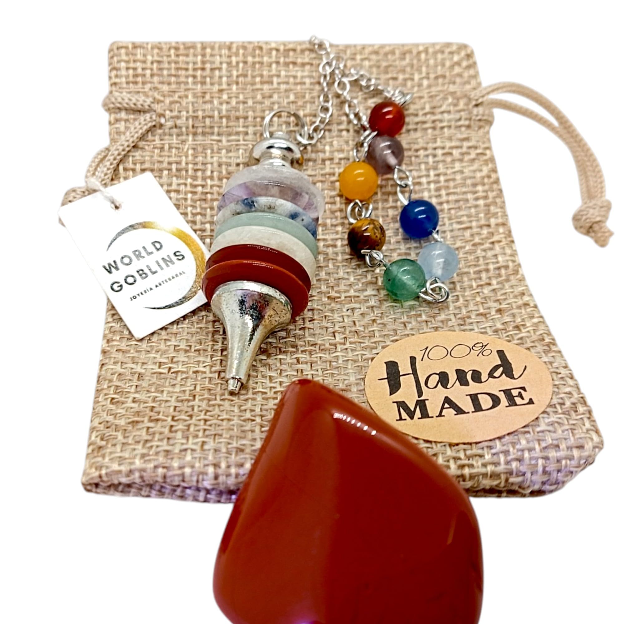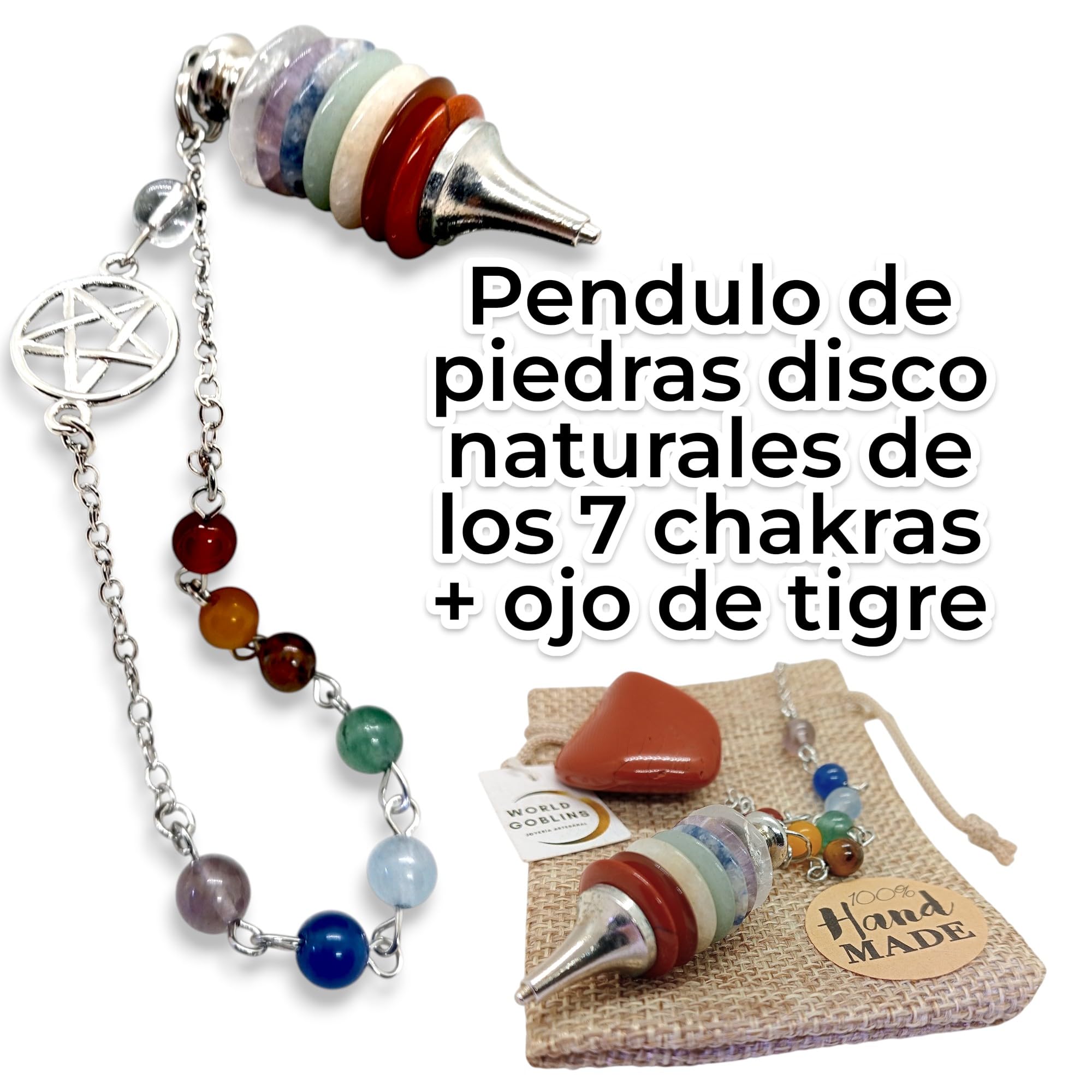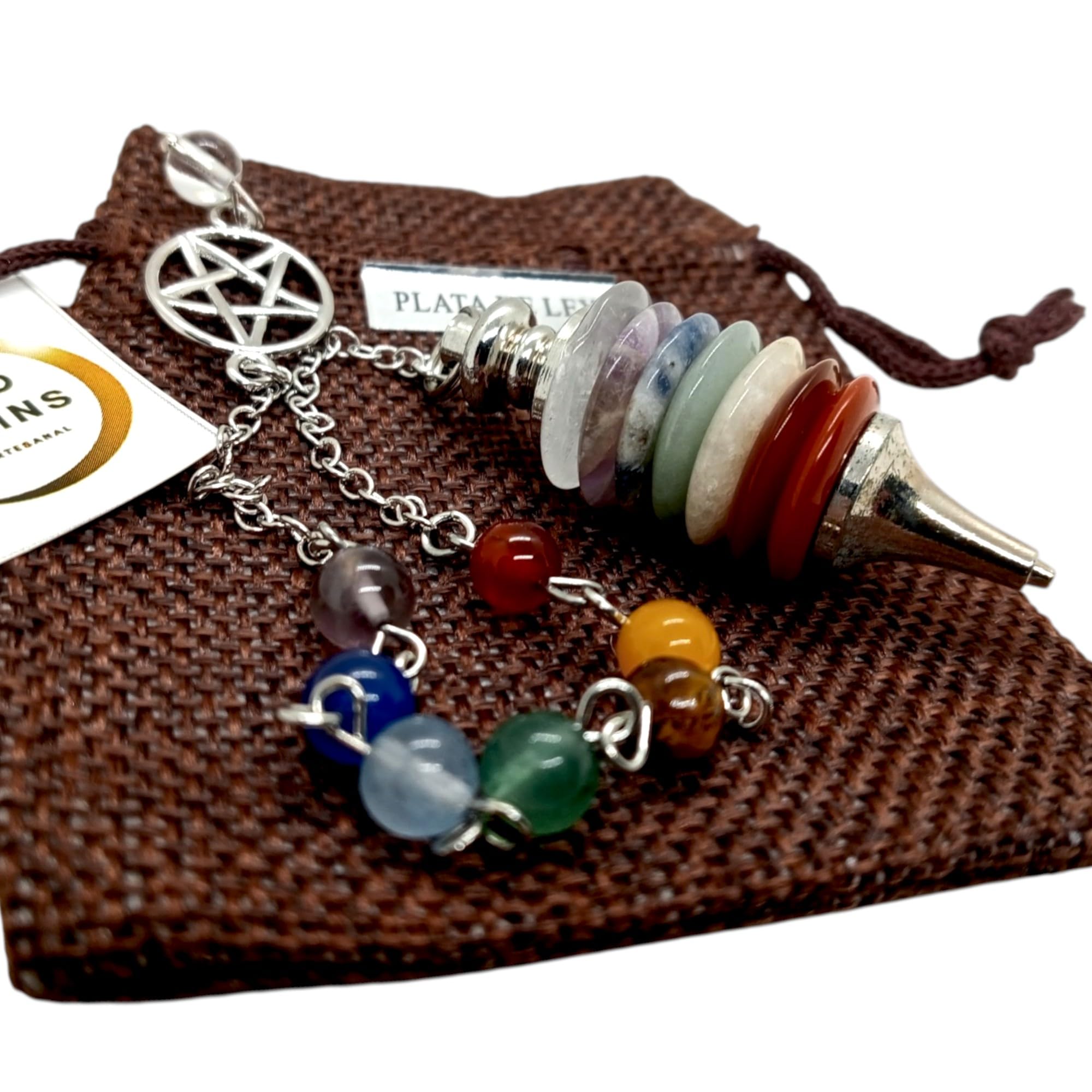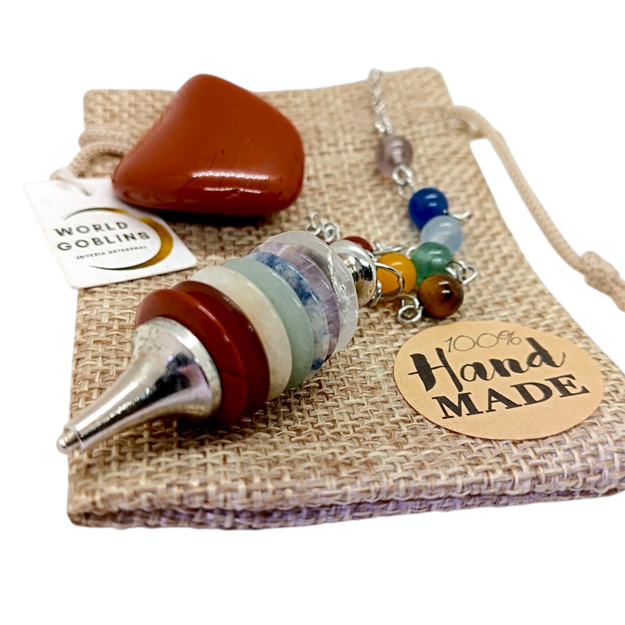 - 🀄 DISCO DE PIEDRAS NATURALES 7 CHAKRAS El péndulo incorpora discos de piedra natural que representan los siete centros energéticos del cuerpo: raíz, sacro, plexo solar, corazón, garganta, tercer ojo y corona. Incluye piedra natural de Jaspe Rojo; conocido como la «piedra de la vitalidad» y el enraizamiento, asociado al primer chakra (raíz) para brindar fuerza, seguridad y equilibrio emocional