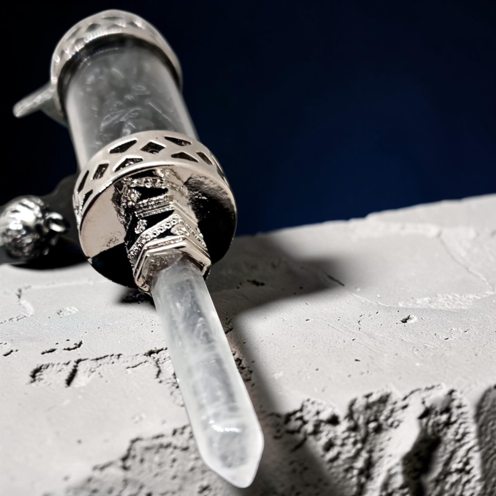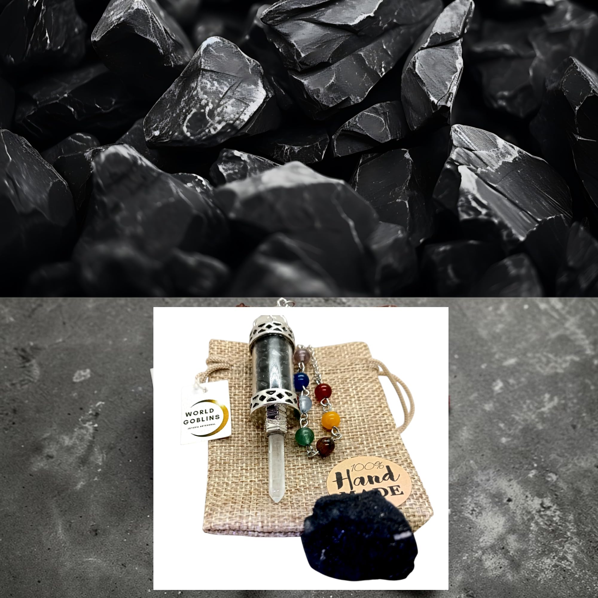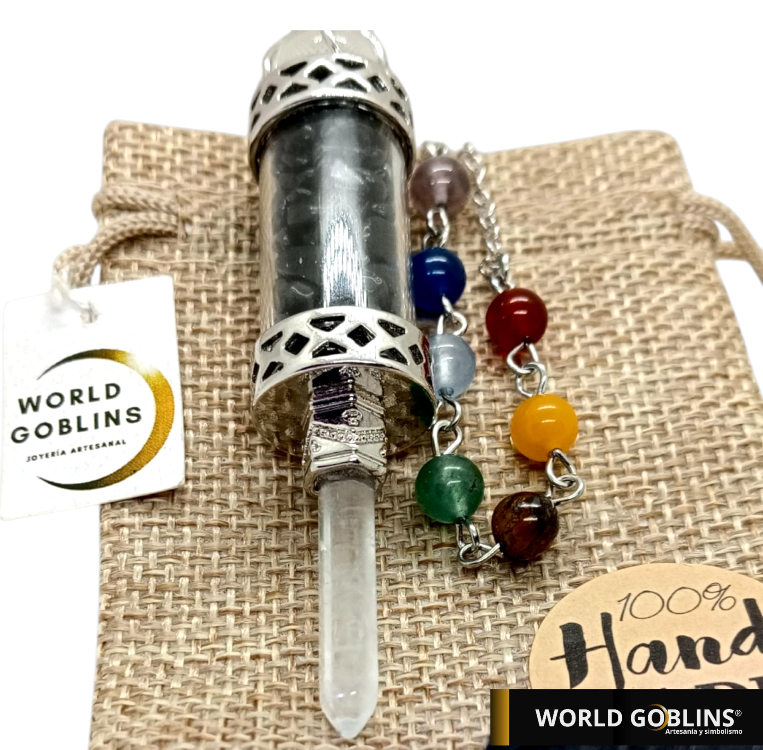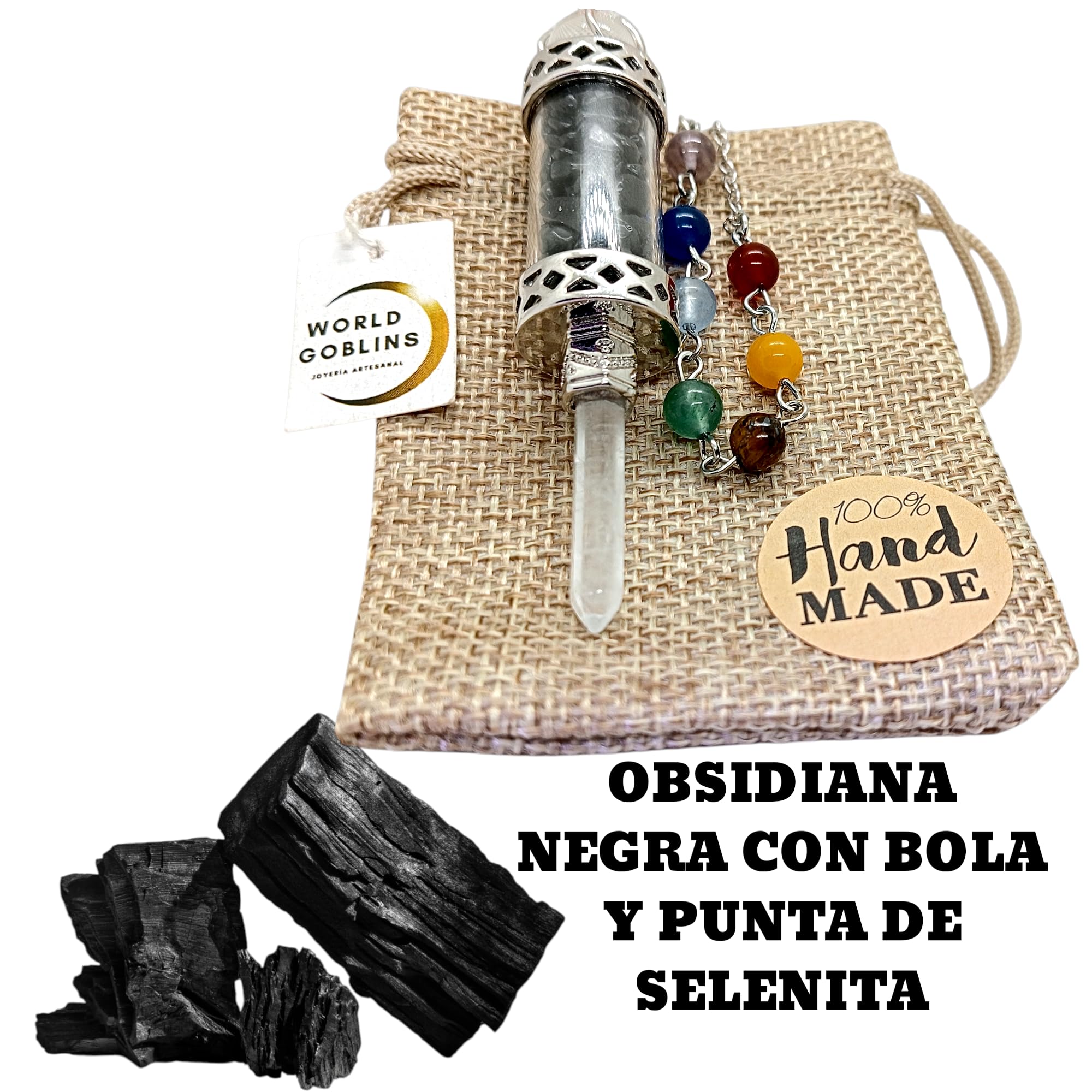 - 🀄 PÉNDULO OBSIDIANA NEGRA Y SELENITA Péndulo esotérico elaborado con obsidiana negra y punta de selenita, una poderosa combinación de minerales utilizada tradicionalmente para protección energética, limpieza espiritual y trabajo de radiestesia