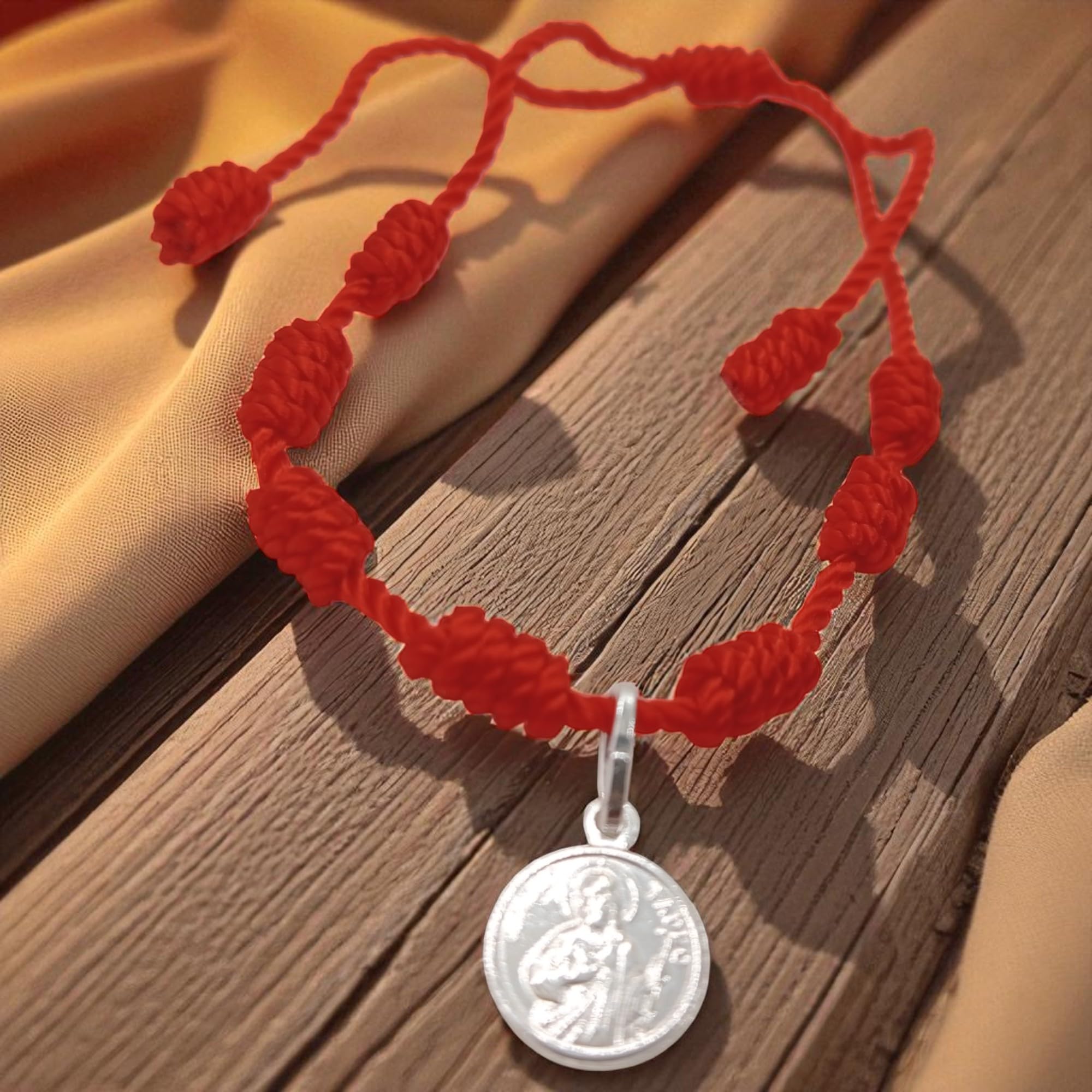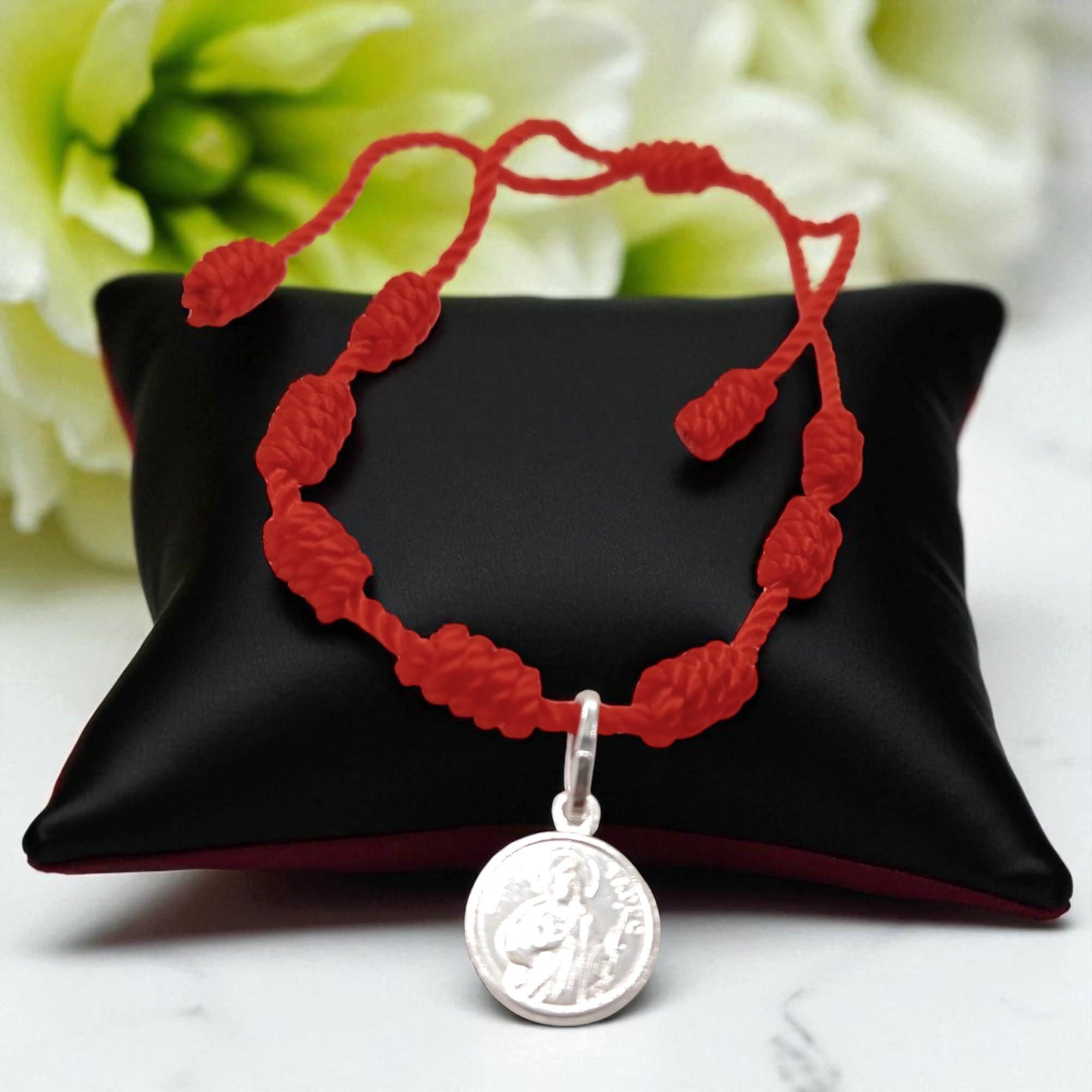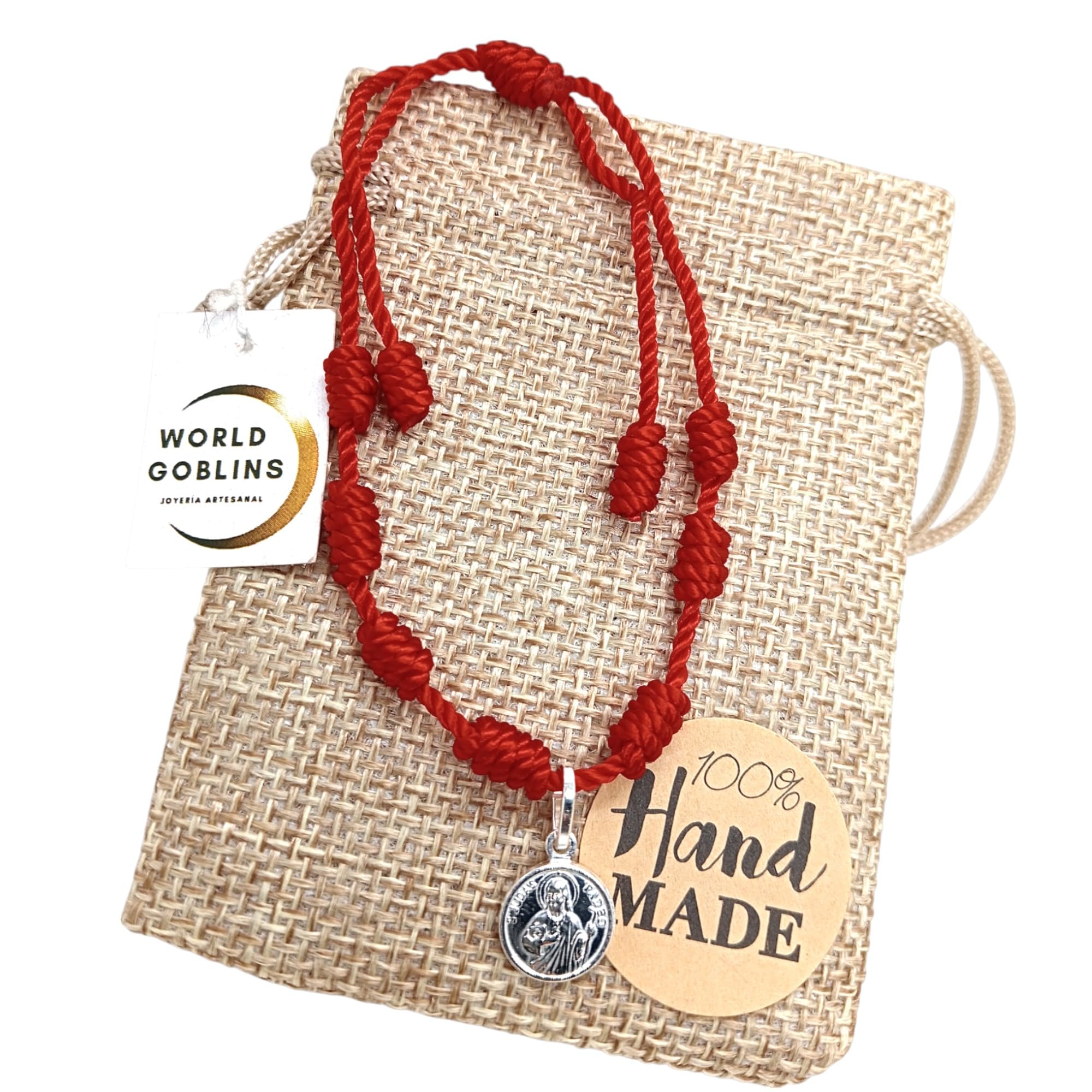 Acompañada de una una bolsa de yute de diseño para guardar tu Pulsera. Descubre la magia y la elegancia en nuestra Pulsera Roja , una joya única. San Judas Tadeo en auténtica Plata de Ley 925 cargada de simbolismo místico, no solo es un accesorio de moda, sino una expresión de protección y buenos deseos.