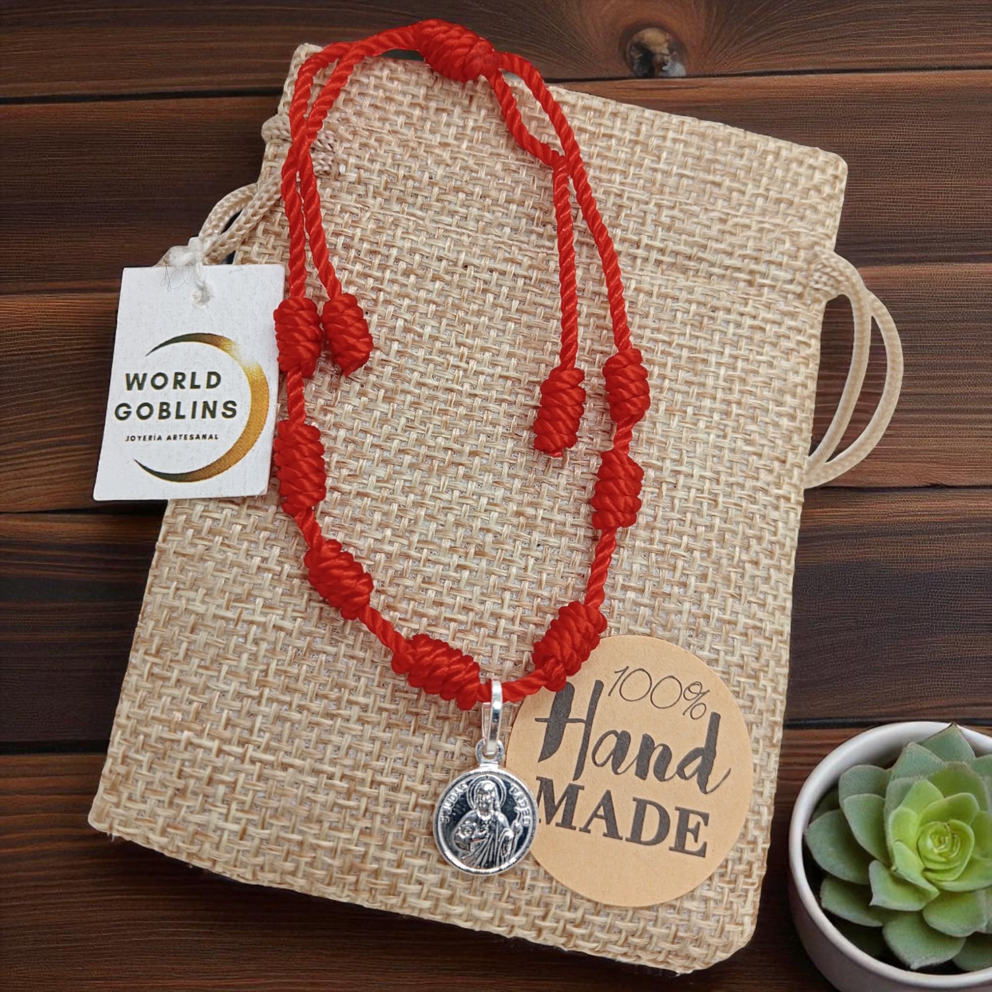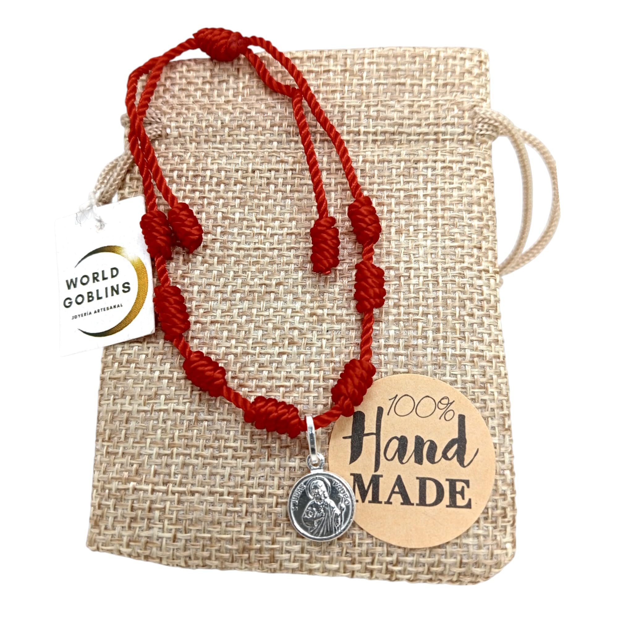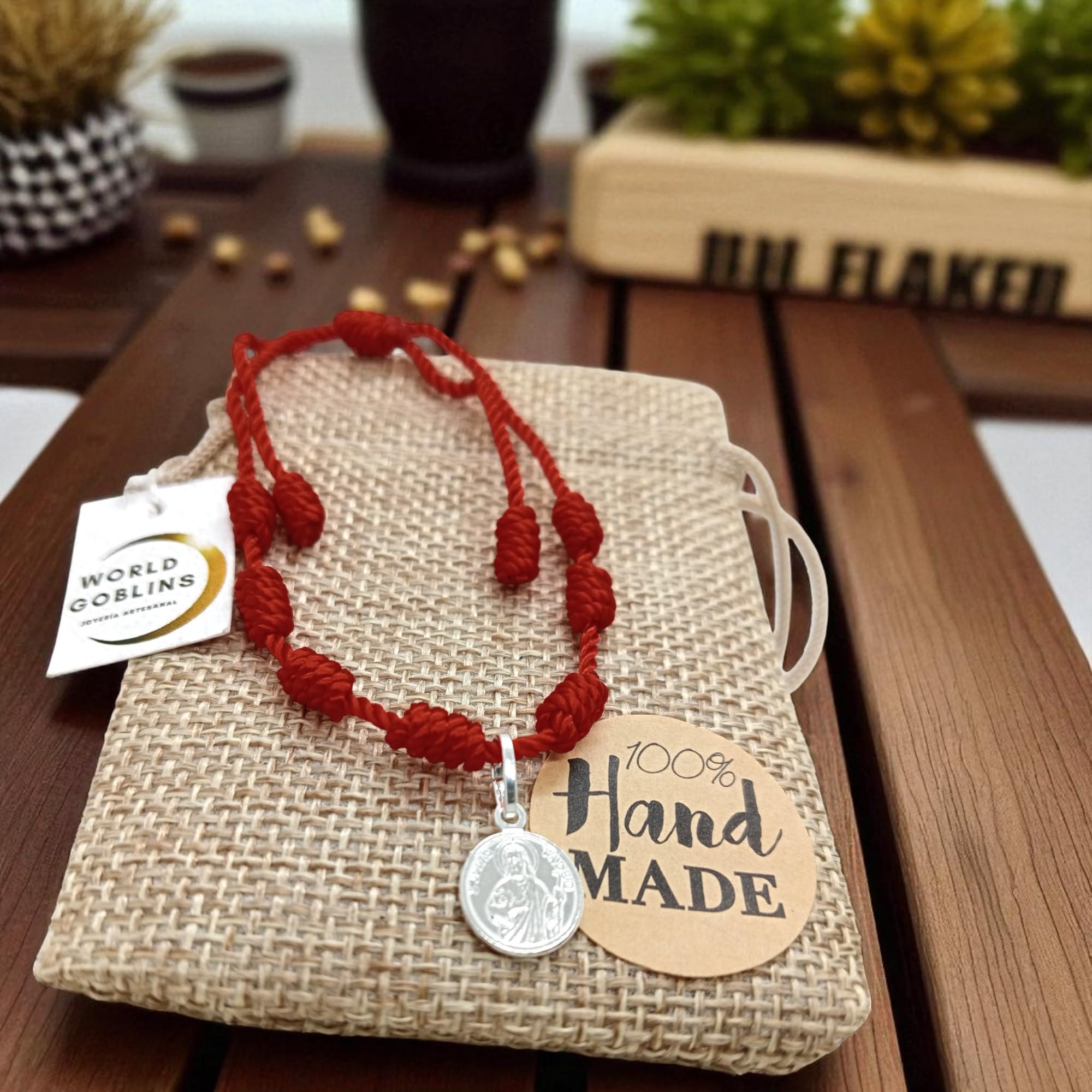 Acompañada de una una bolsa de yute de diseño para guardar tu Pulsera. Descubre la magia y la elegancia en nuestra Pulsera Roja , una joya única. San Judas Tadeo en auténtica Plata de Ley 925 cargada de simbolismo místico, no solo es un accesorio de moda, sino una expresión de protección y buenos deseos.