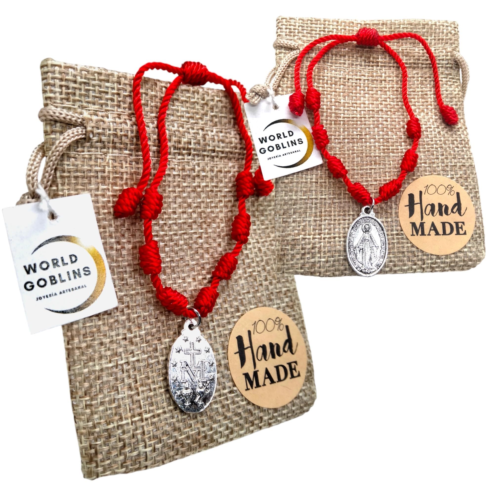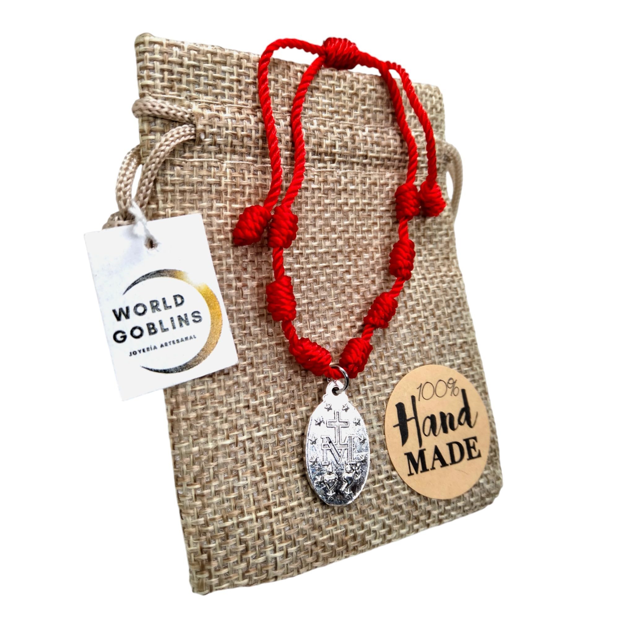 Detalles: WORLD GOBLINS Esta pulsera roja de nudo está diseñada para brindar protección, suerte y equilibrio energético, combinando el poder del cordón rojo con el simbolismo espiritual de la Medalla de la Virgen Milagrosa, chapada en 12 micras de Plata de Ley 925. Cada uno de los nudos representa los 7 chakras o centros energéticos del cuerpo, ayudando a alinear y armonizar la energía a lo largo de la columna vertebral.