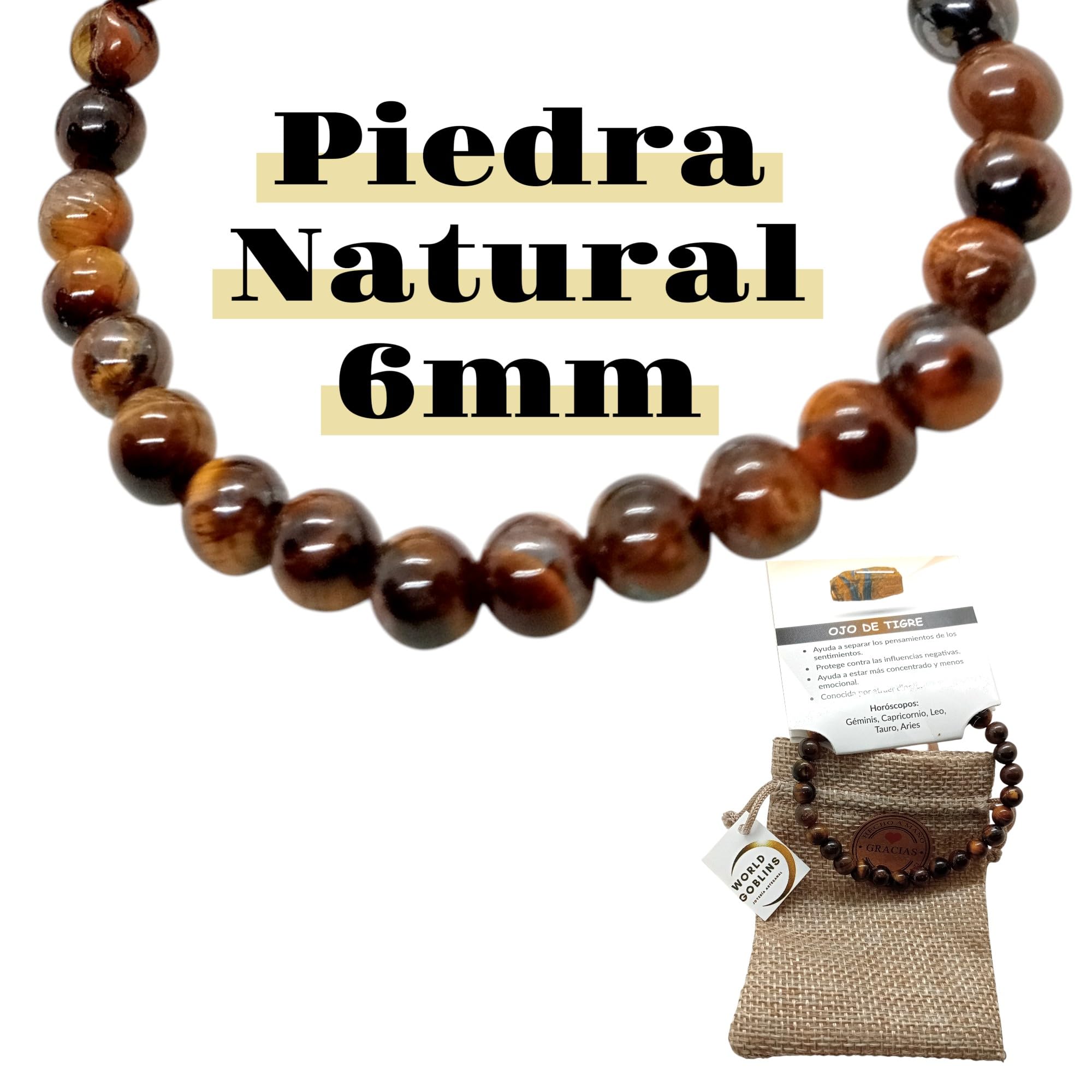 - 🌙✨PIEDRA NATURAL OJO de TIGRE Elaborada con bolas de ojo de tigre auténtico de 6 mm, piedra conocida por su poder protector y su capacidad para aportar fuerza interior, confianza y equilibrio emocional