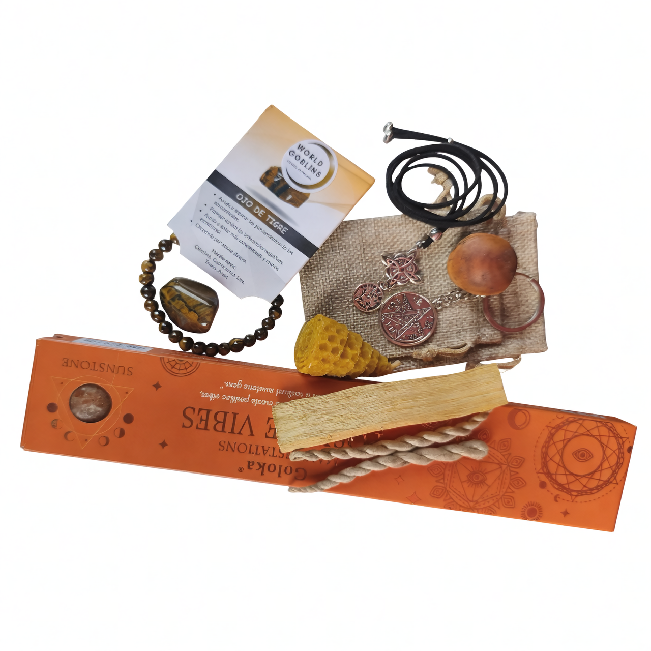 Este kit espiritual combina amuletos, palo santo e incienso para ayudarte a desbloquear oportunidades, proteger tu energía y atraer abundancia a tu vida.