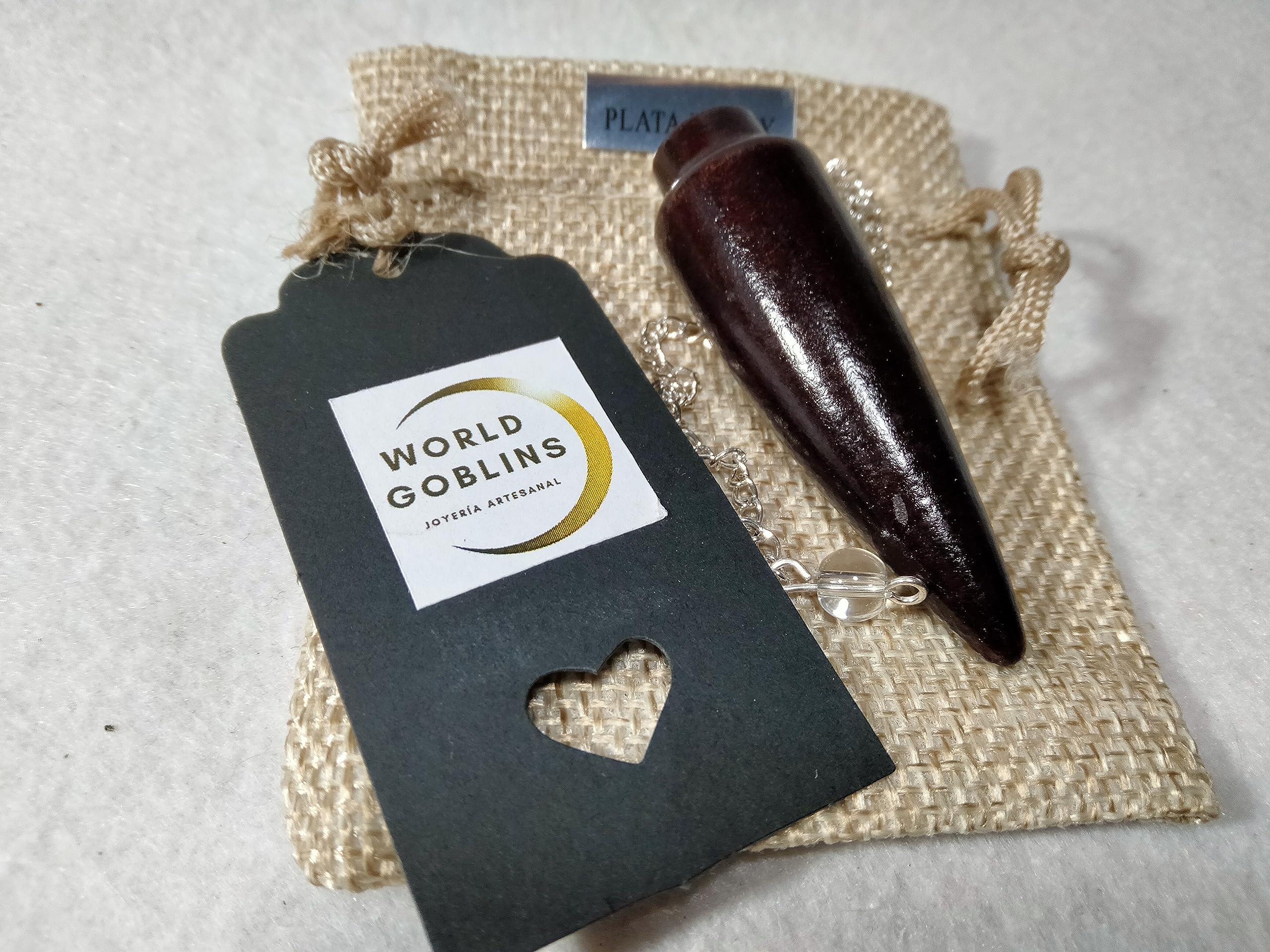 WORLD GOBLINS Péndulo Egipcio de Madera 6CM con Cadena de Plata de Ley 925. 21CM | Radiestesia Adivinación + Folleto Explicativo y Bolsa Yute. Joyería Espiritual (Péndulo Faraón 6 cm)